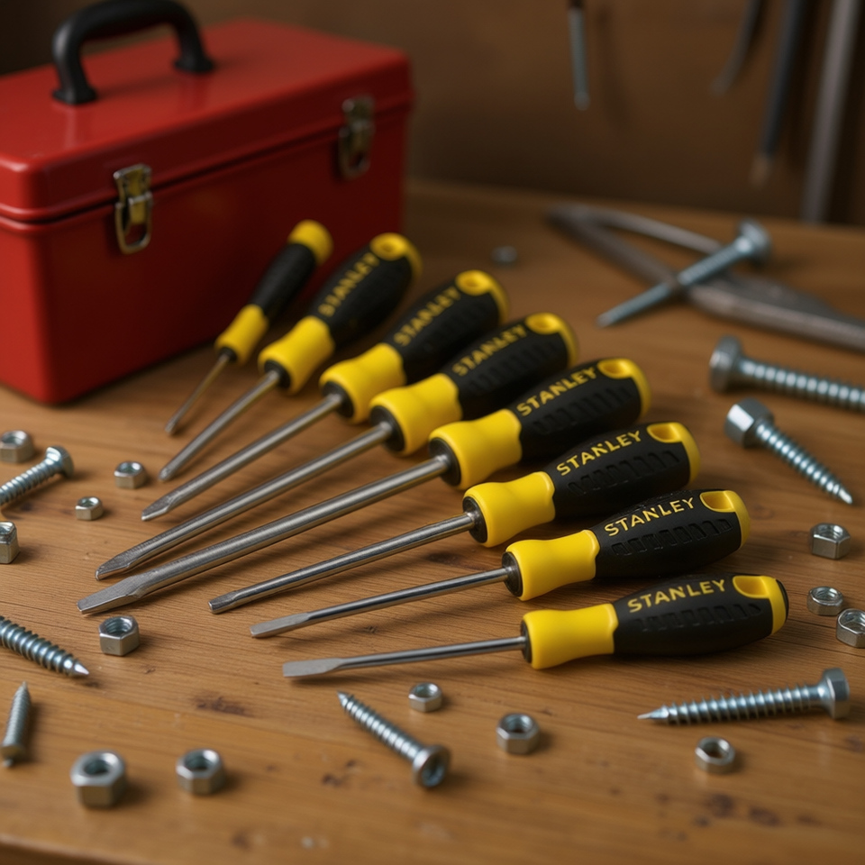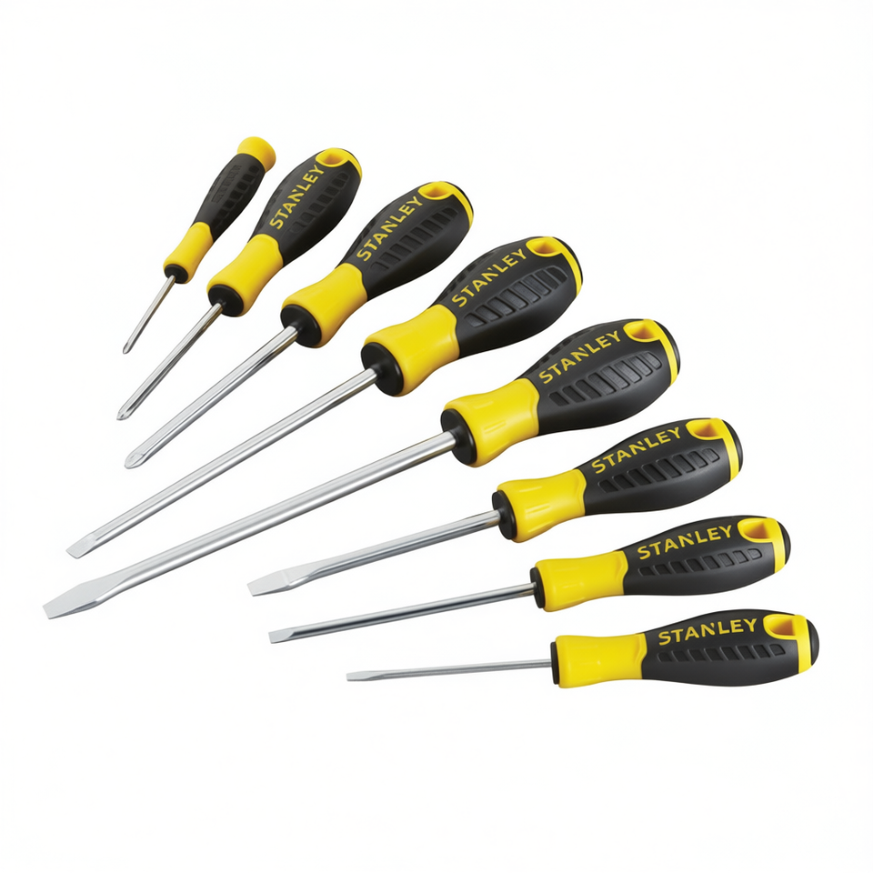 ชุดไขควงสแตนลีย์เอสเซนเชียล 8 ชิ้น ประกอบด้วย 6 ชิ้นสำหรับงานซ่อมแซมและติดตั้งพื้นฐาน