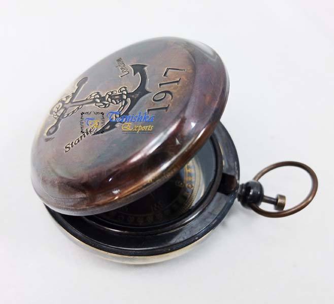 Stanley London เข็มทิศแบบโบราณทำจากทองเหลืองสำหรับ1917, เข็มทิศทางทะเลโบราณดีไซน์สมอเรือสำหรับเทศกาลคริสต์มาสที่ชุบด้วยไฟฟ้า