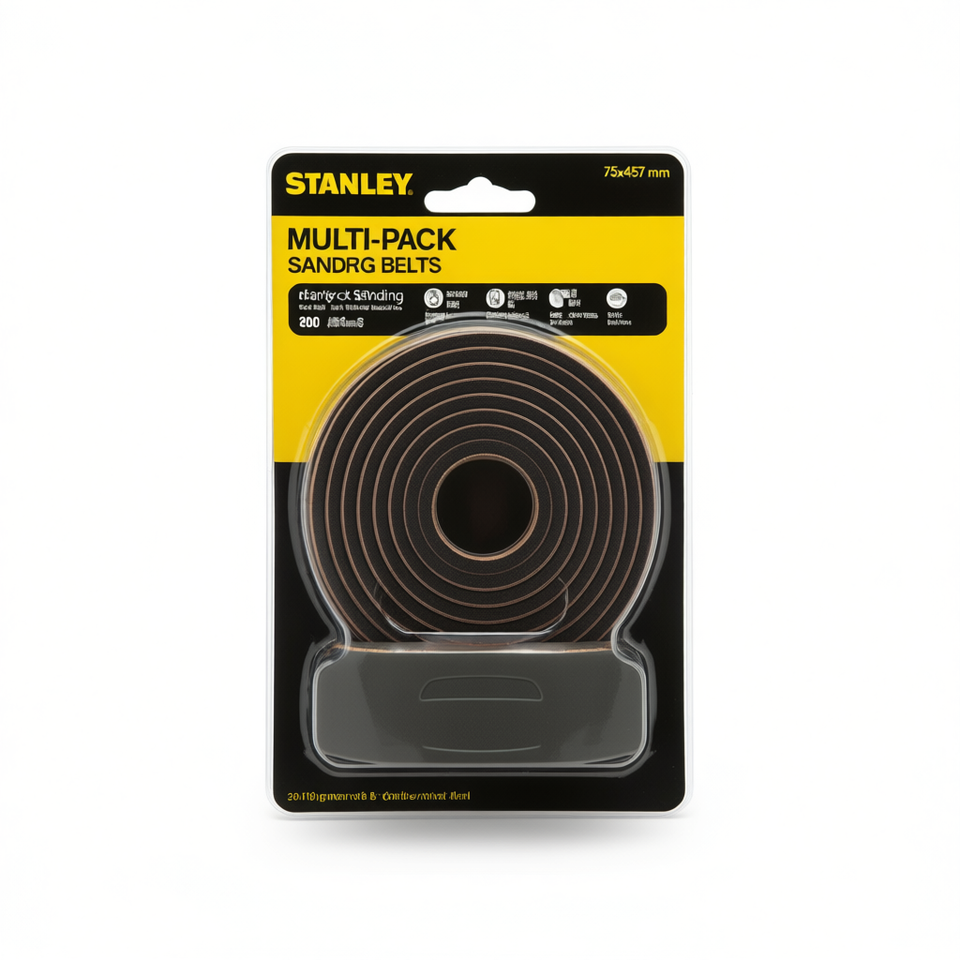 สายพานขัดกระดาษทรายสแตนลีย์แบบแพ็คหลายชิ้น ขนาด 75x457 มม. สำหรับเครื่องขัดสายพาน