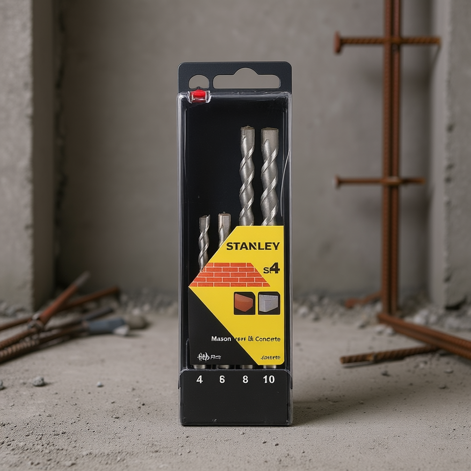 ชุดดอกสว่านสแตนลีย์ SDS สำหรับงานก่ออิฐและคอนกรีต 4 ชิ้นในกล่อง