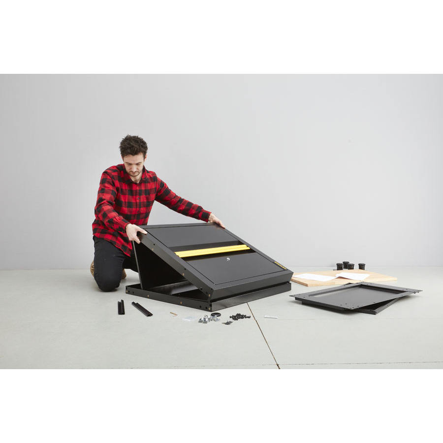 ตู้ติดผนังสแตนลีย์แบบประตูเดียว สีเทาเหล็ก พร้อมกุญแจล็อค สำหรับเก็บของมีค่า แบบล็อคด้วยมือ เคลือบสีฝุ่น ยังไม่ได้ประกอบ