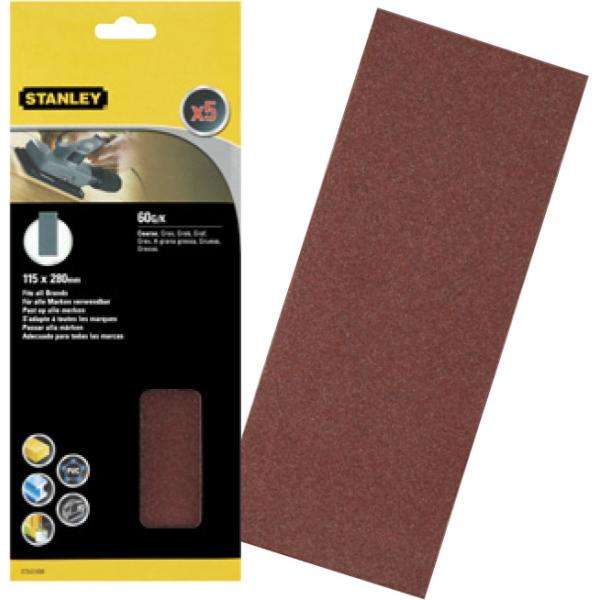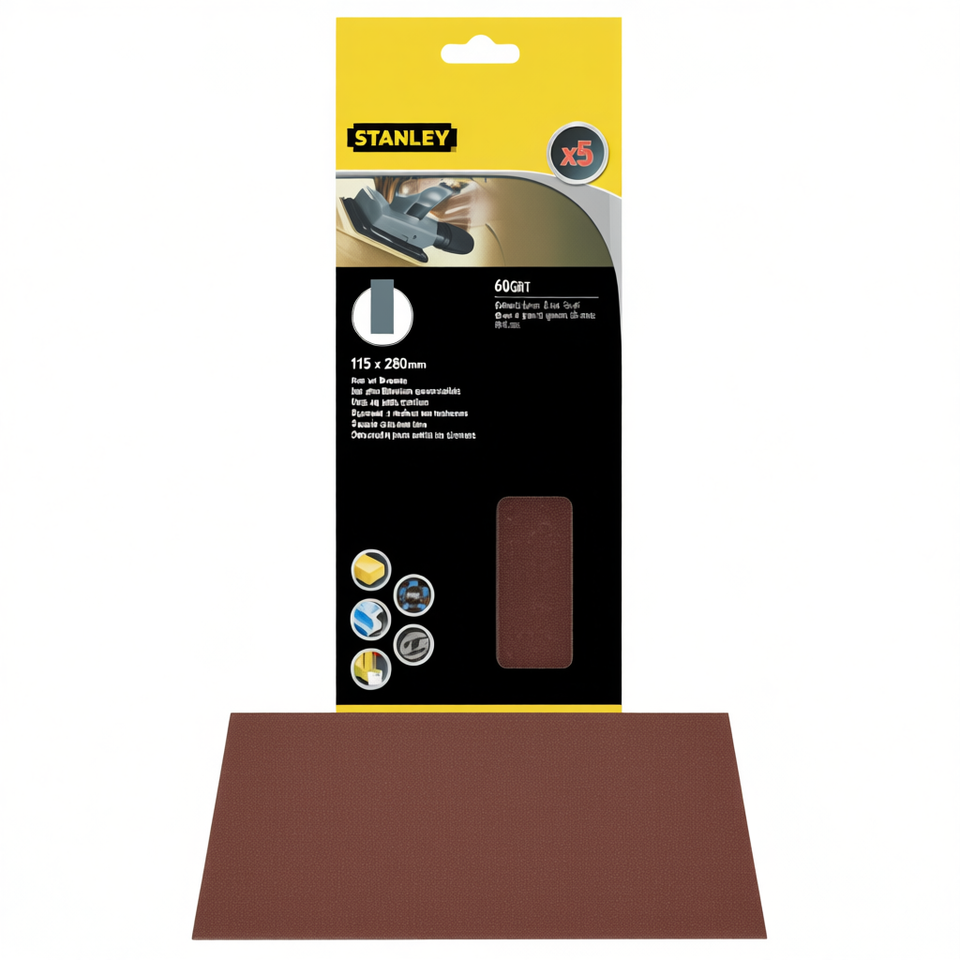 แผ่นกระดาษทราย Stanley แบบไม่เจาะรู ขนาด 115x280 มม. แพ็คหลายชิ้น ผลิตภัณฑ์ขัดถู