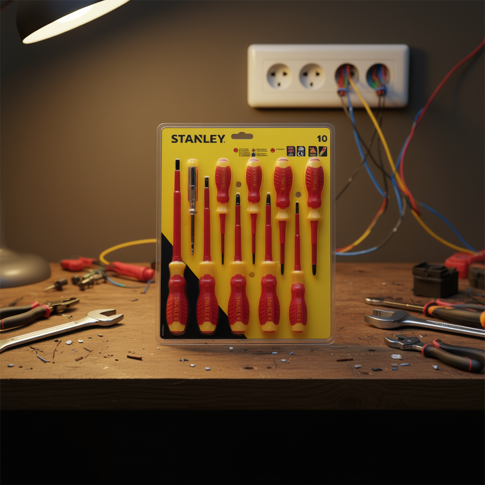 ชุดไขควงหุ้มฉนวน Stanley VDE พร้อมเครื่องทดสอบ ชุดเครื่องมือ 9 ชิ้น