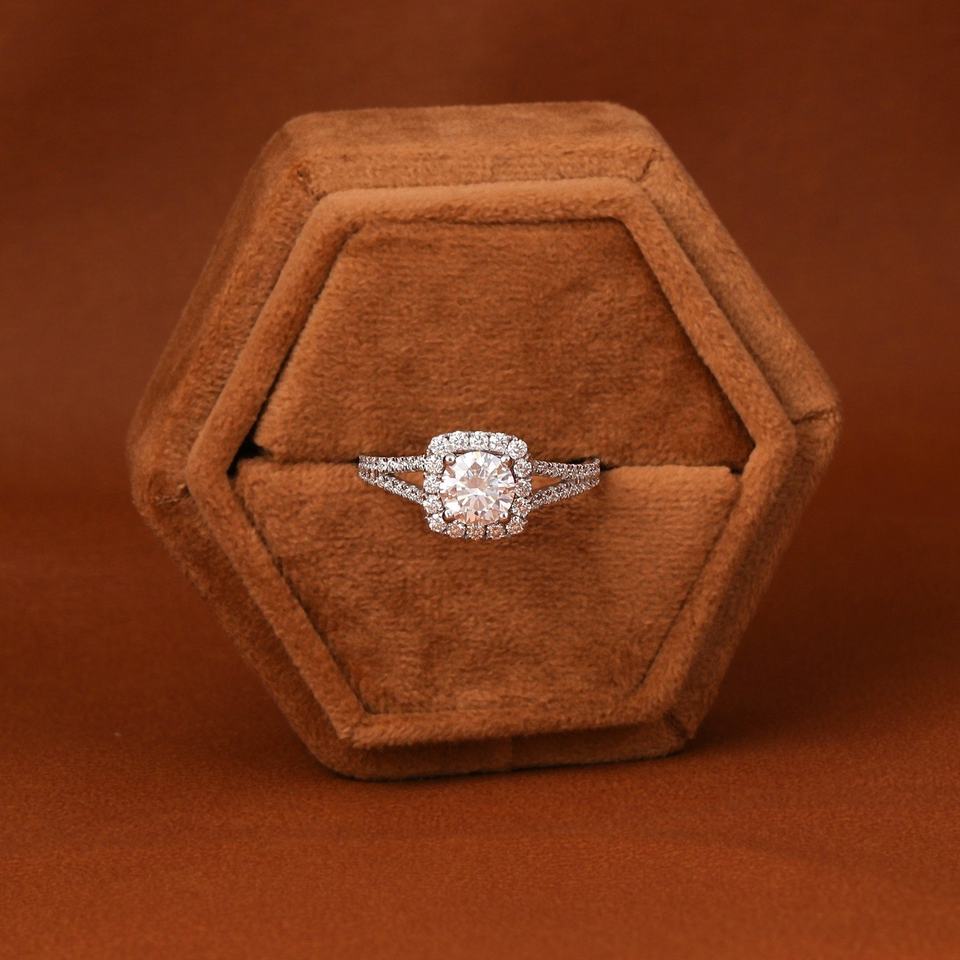 แหวนเพชรรูปดาวสุดหรูสำหรับผู้หญิงประดับด้วยรัศมีงานหมั้นของผู้หญิงเครื่องประดับเพชรสีทองสวย