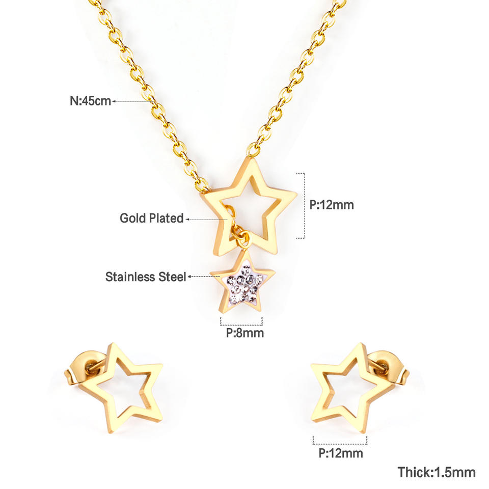 ชุดสร้อยคอต่างหูรูปดาว โทนสีทอง จี้รูปดาวแบบโปร่ง ประดับด้วยเพชรเทียม เครื่องประดับแฟชั่นสำหรับผู้หญิง ของขวัญสำหรับงานปาร์ตี้
