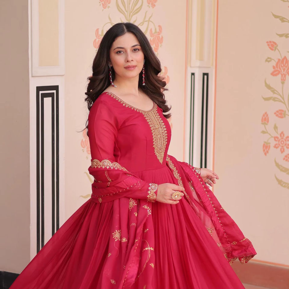 ชุดเดรส Anarakli ผ้าจอร์เจตต์ปักลายดาว พร้อมผ้าคลุมไหล่ดีไซน์เนอร์ ประดับด้วยงานปักดิ้นทองและลายดาว
