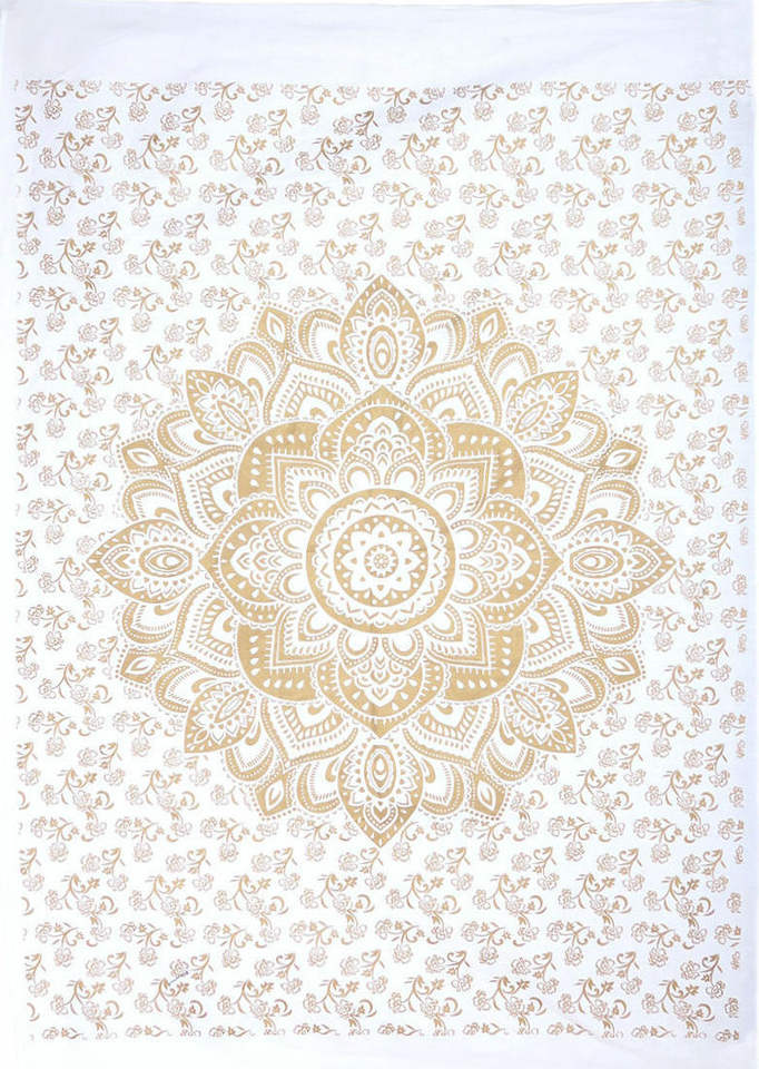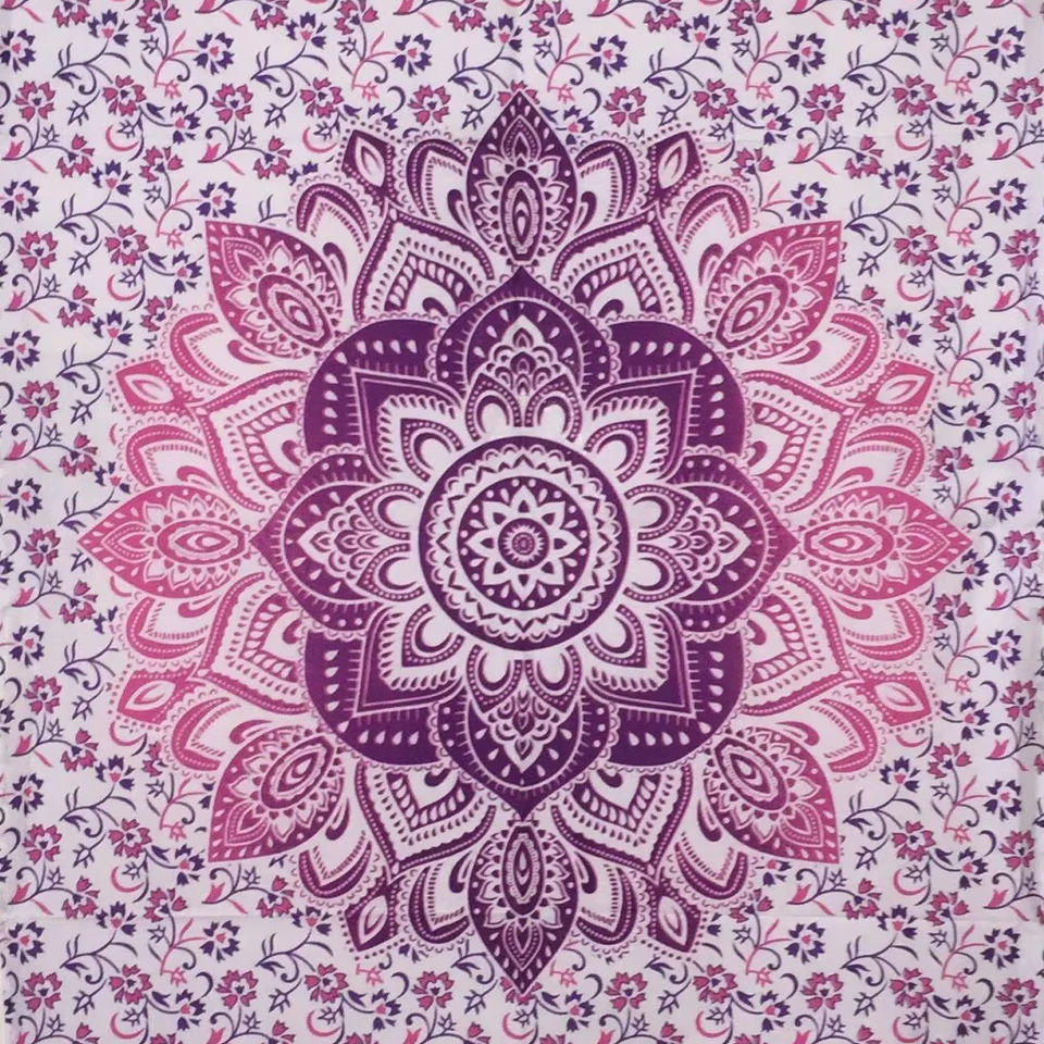 พรมแขวนผนังผ้าคอตตอนลายดอกไม้แบบไล่เฉดสีแมนดาลาชุดเครื่องนอนขนาดเตียงคู่สวยงามตกแต่งบ้านทำมือด้วยสินค้าหลักของอินเดีย