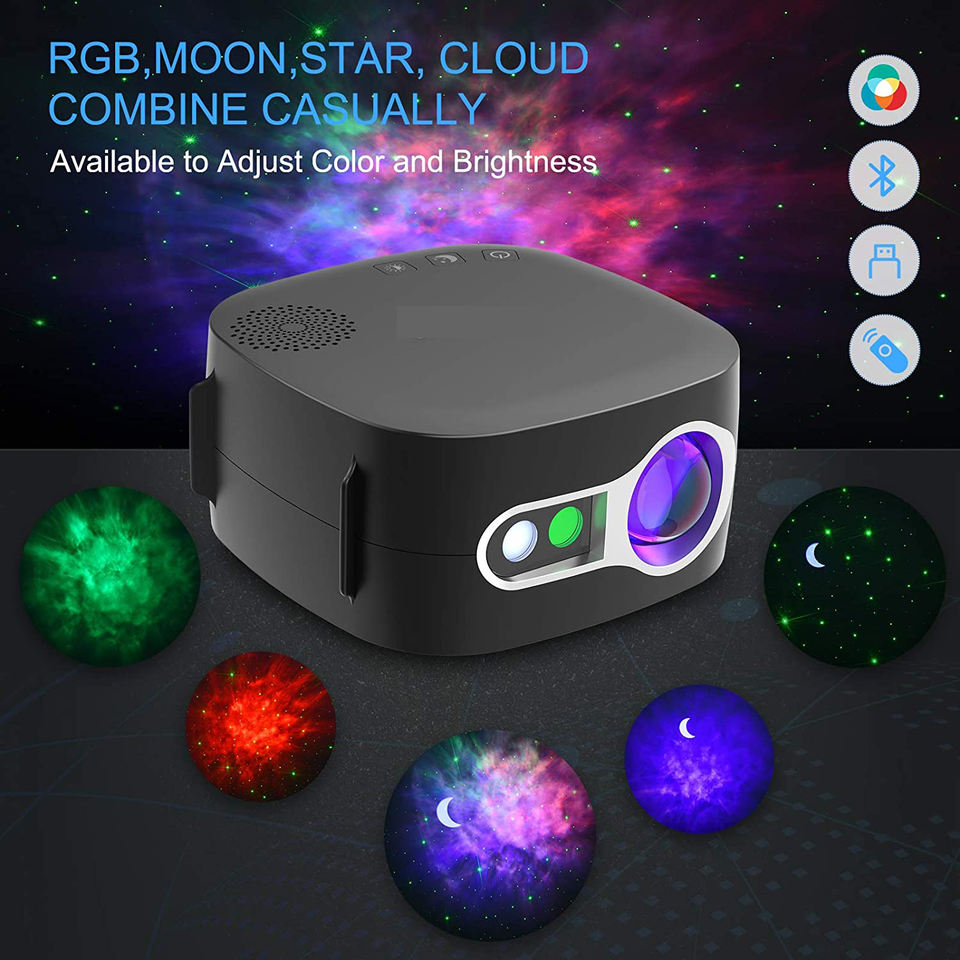 เครื่องฉายรูปดาวเครื่องฉายไฟกลางคืนลายเนบิวลาดวงจันทร์พร้อมลำโพงไร้สายโปรเจคเตอร์เพดานเงียบควบคุมระยะไกลโคมไฟปาร์ตี้