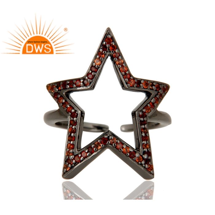 ดาวรูปร่างสีดำออกซิไดซ์925เครื่องประดับเงินสเตอร์ลิงผู้ค้าส่งพลอยโกเมนออกแบบ Midi แหวนหมั้นผู้ผลิตเครื่องประดับ