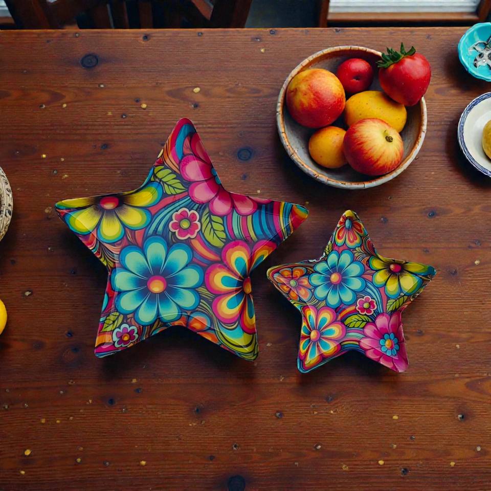 ชุดจานเสิร์ฟรูปดาวพร้อมลายดอกไม้หลากสี | จานโชว์อาหารและขนมแบบศิลปะ