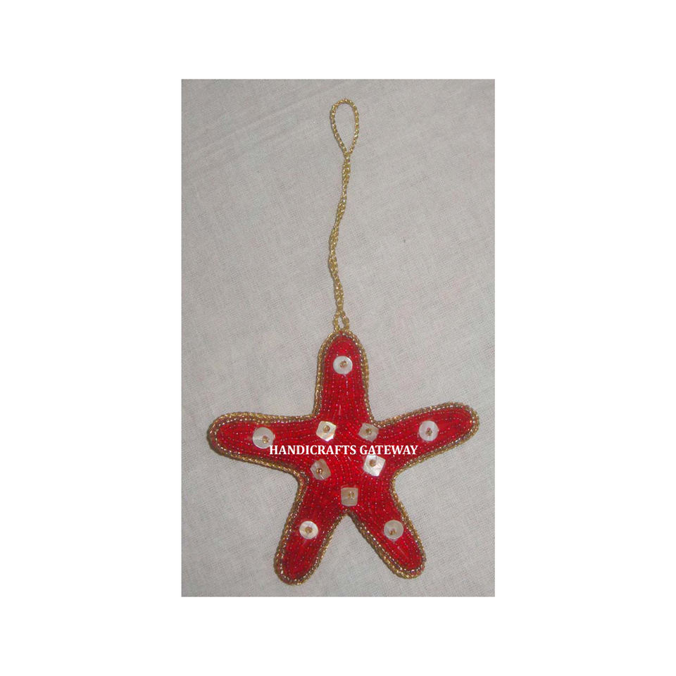 เครื่องประดับแบบแขวนทำมือรูปดาว zari ต้นคริสต์มาสวัสดุผ้าสีแดงใช้สำหรับตกแต่งต้นคริสต์มาส