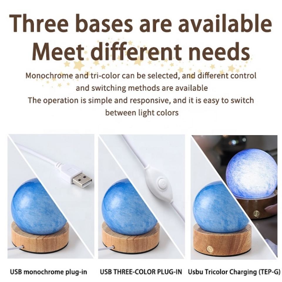 โคมไฟกลางคืนรูปดาว LED แบบ USB โคมไฟไม้ ดีไซน์ทันสมัย โคมไฟคริสตัลทรงกลมแก้ว