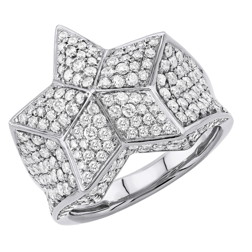 แหวนเงินสเตอร์ลิงสำหรับผู้ชายเครื่องประดับฮิปฮอปหรูหรารูปทรงดาวเพชรโมอิส925