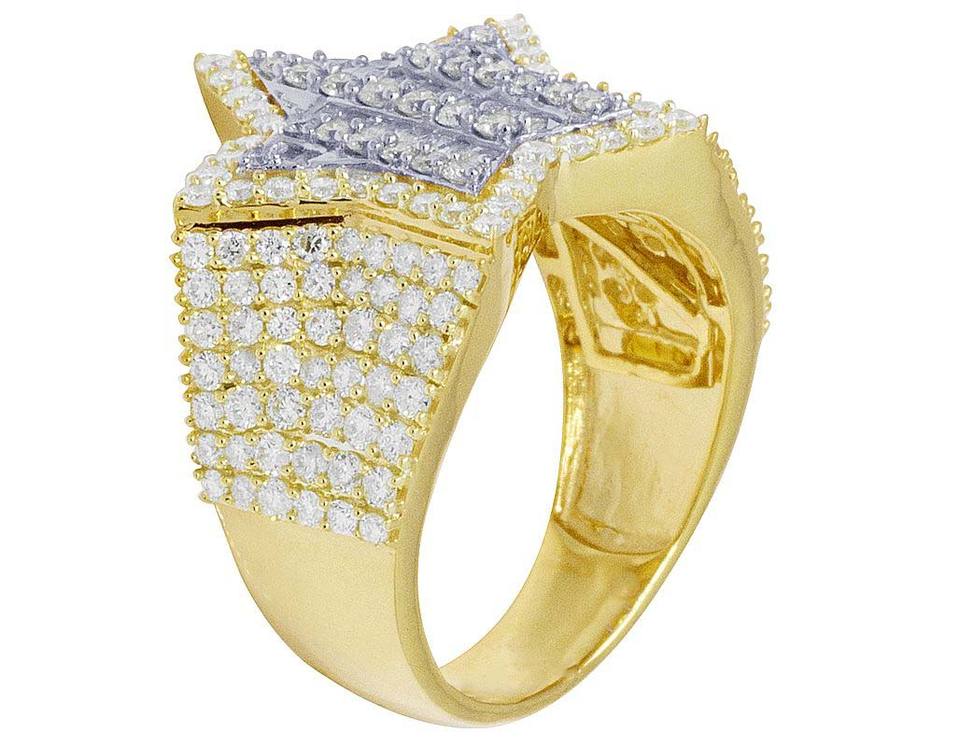 แหวนผู้ชายรูปดาวทำด้วยทองคำ10K สีเหลืองประดับเพชรแนวฮิปฮอปที่ปลูกในห้องทดลอง