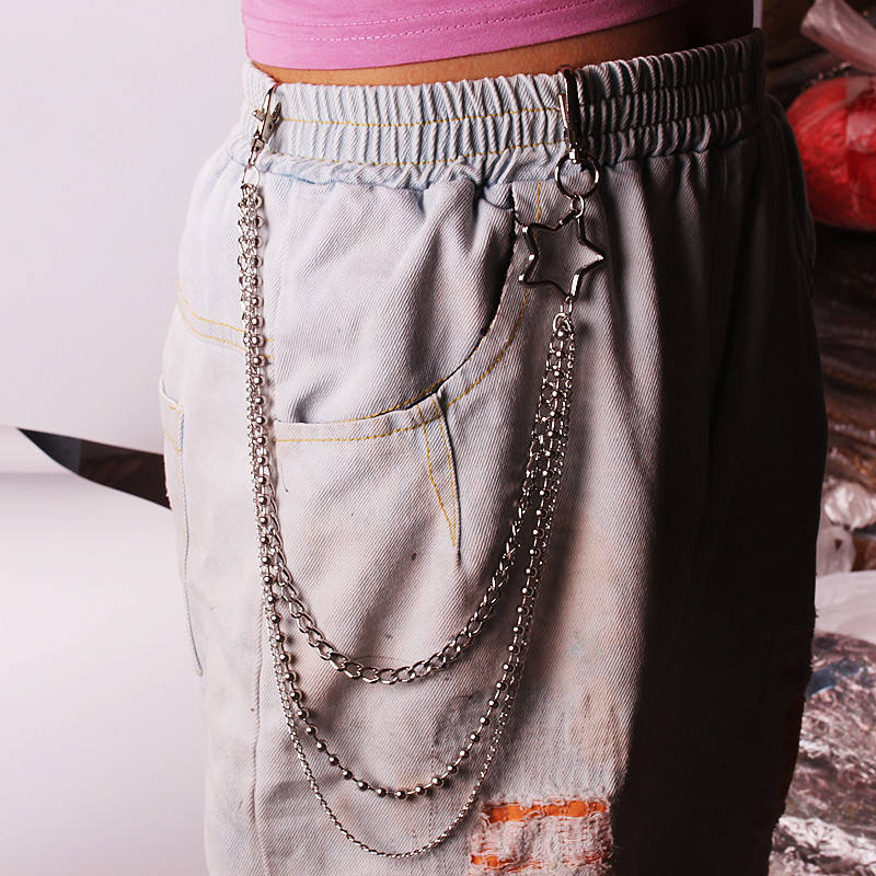 โซ่โลหะรูปดาว สไตล์ฮิปฮอป หลายชั้น สีเงิน เครื่องประดับแฟชั่นสำหรับทุกเพศ ใช้ได้ทุกวัน ทำจากโลหะผสมสังกะสี