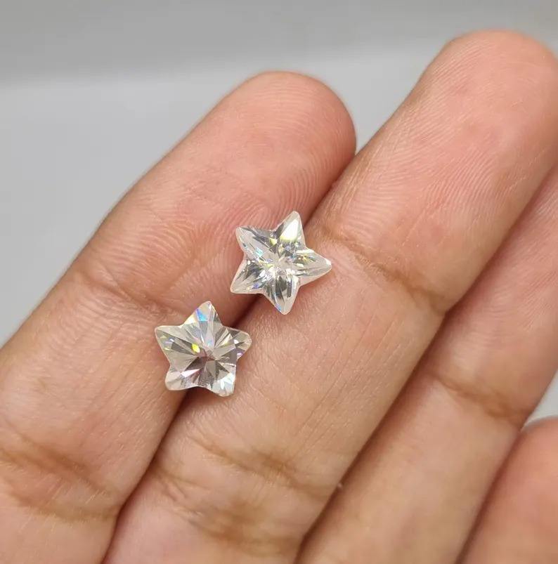 ต่างหูเพชรโมอิสสีขาวพร้อมจี้รูปดาว2ชิ้น