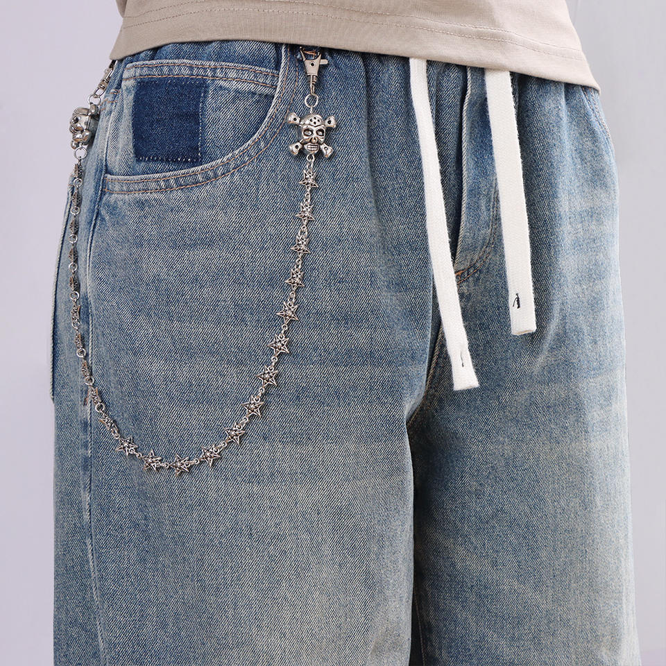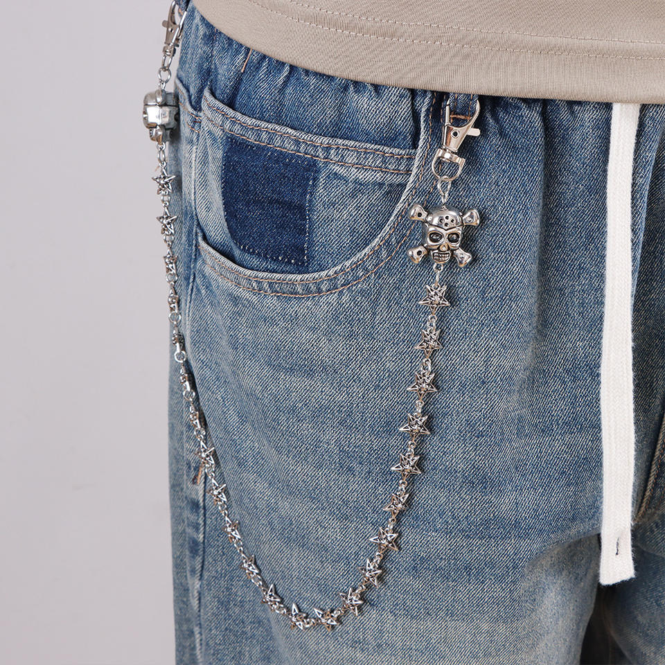 โซ่คาดเอวทรงหัวกะโหลก วัสดุโลหะผสมสังกะสี แบบชั้นเดียว สไตล์ฮิปฮอป สำหรับกางเกงยีนส์ แฟชั่นลำลอง โซ่ประดับร่างกาย