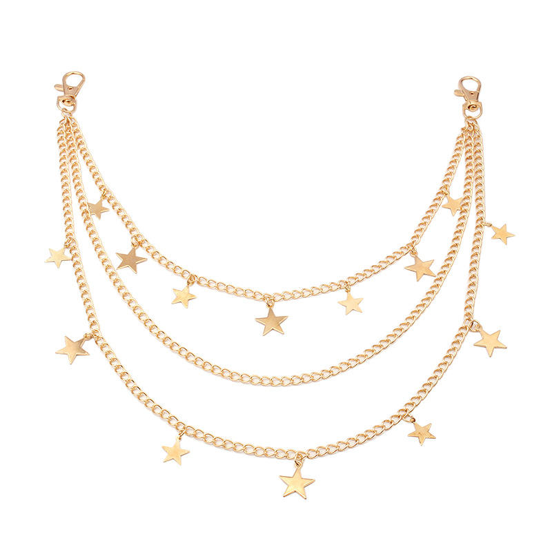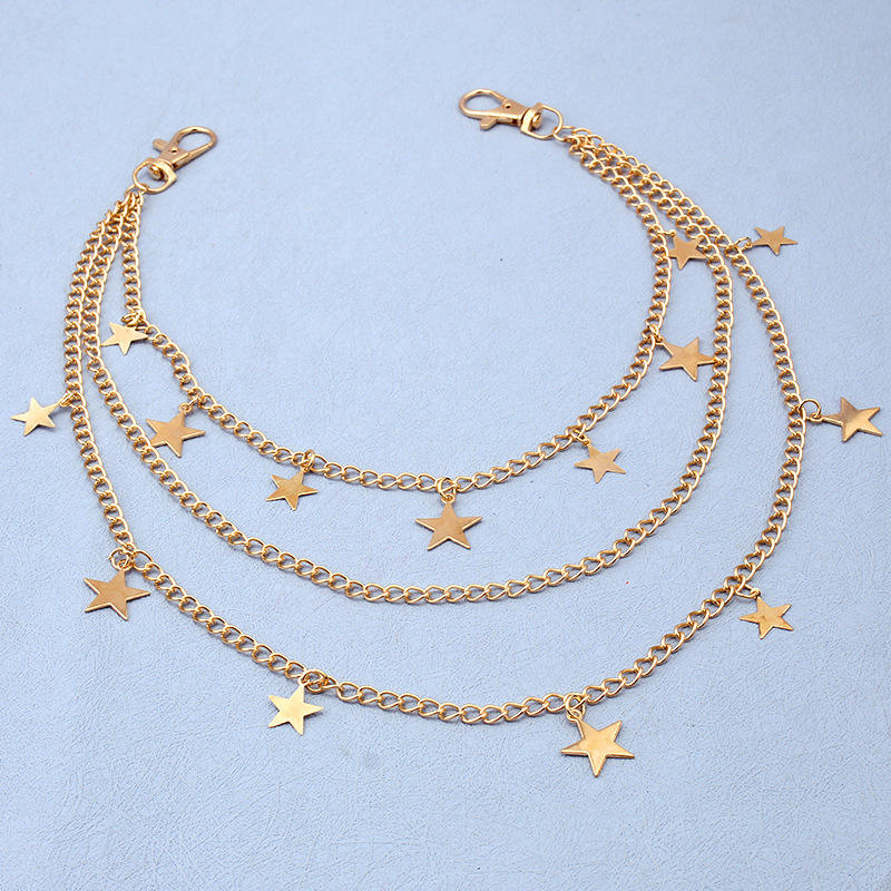 โซ่คาดเอวทรงดาว สีทอง หลายชั้น สไตล์ฮิปฮอป สำหรับงานปาร์ตี้ โซ่คล้องกางเกง ทำจากโลหะผสมสังกะสี