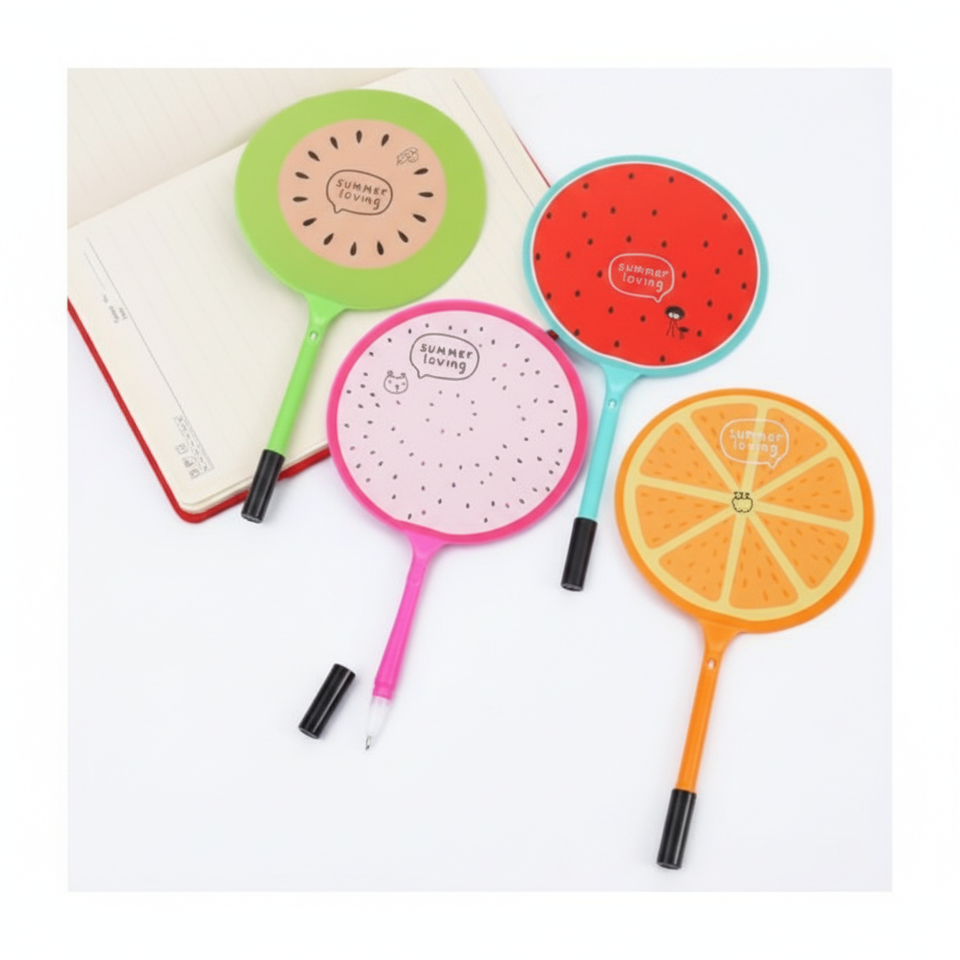 พัดลมมือถือขนาดเล็กพกพาได้รูปแตงโมพร้อมตัวอักษรลอยน้ำสำหรับวันฤดูร้อน