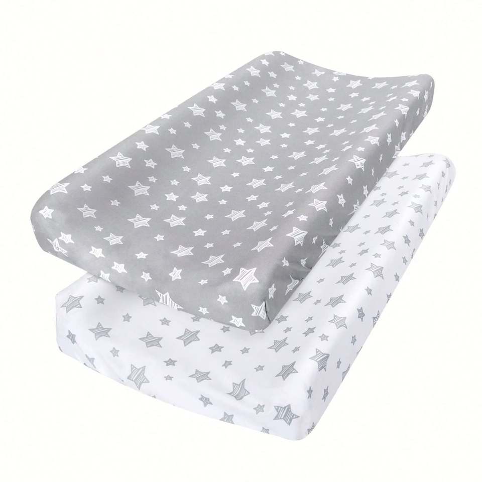 ผ้าปูที่นอนเด็กแบบยูนิเซ็กซ์ลายดาวและพระจันทร์ สำหรับคลุมแผ่นรองเปลี่ยนผ้าอ้อม