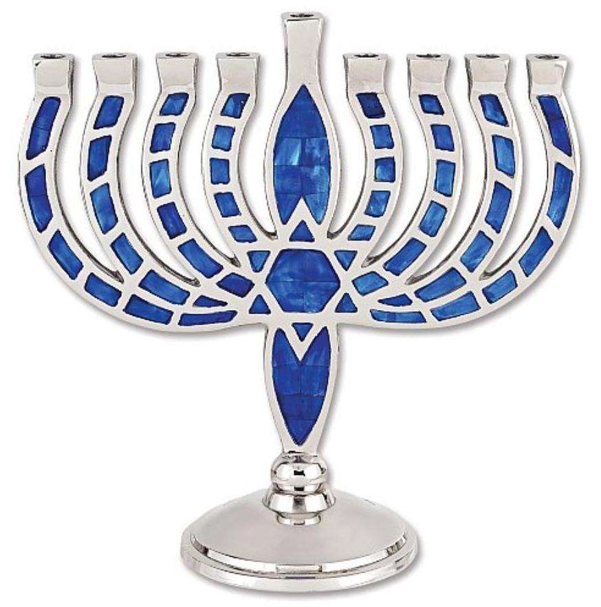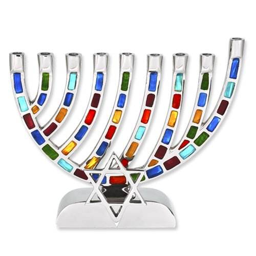 Star menorah jeweled inlay multicolor High Quality Handmade Metal Menorah nine Branches Judaica Candle Holders