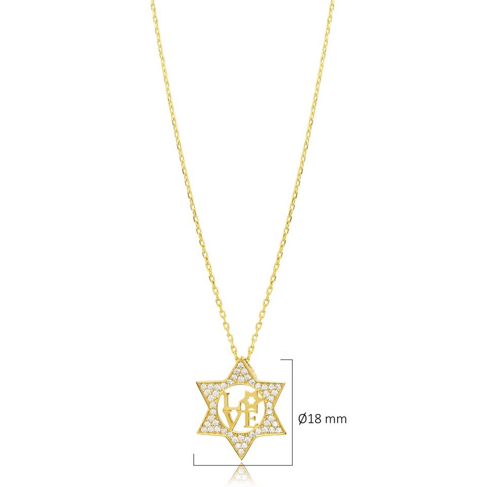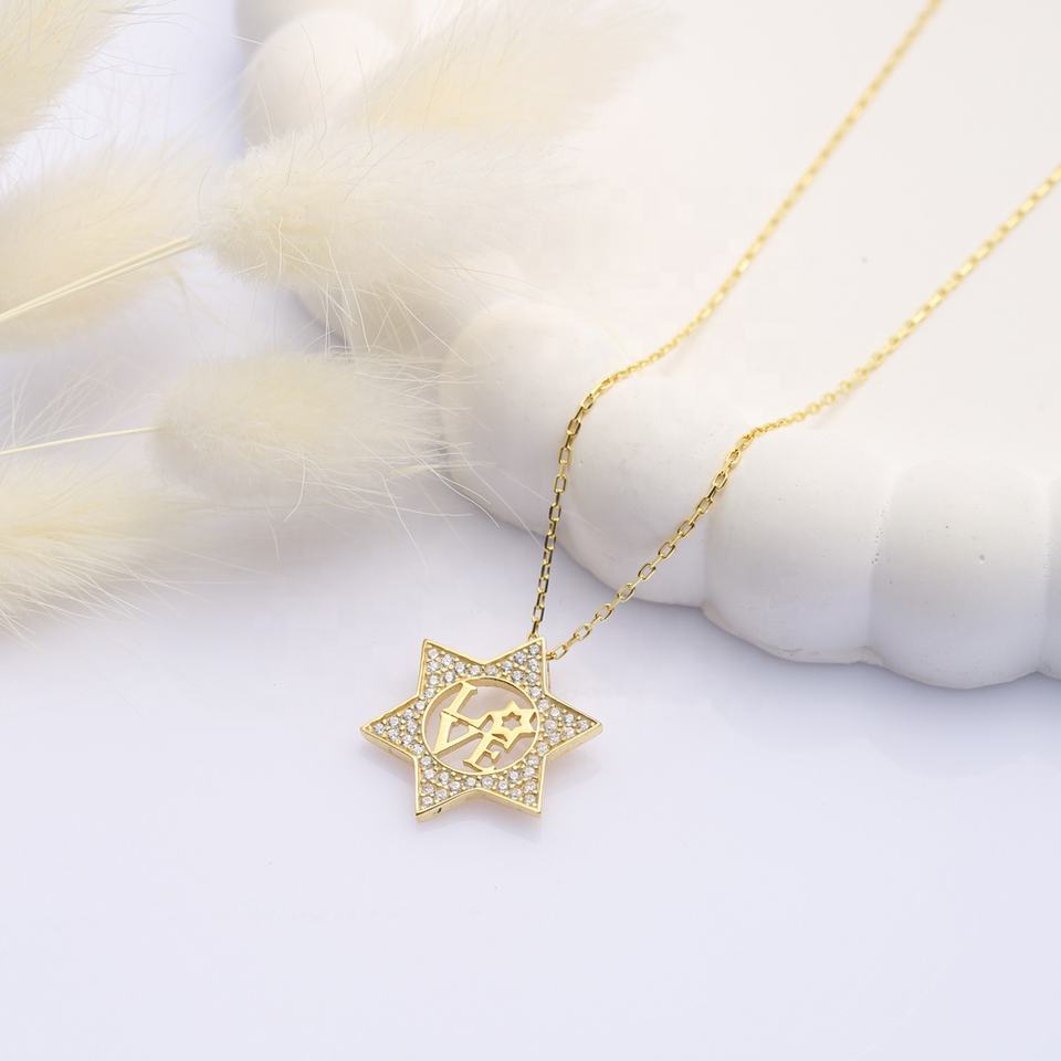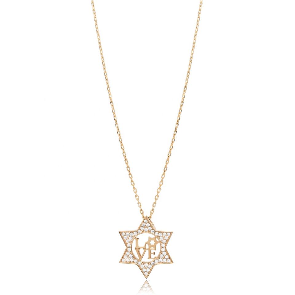 สร้อยคอหินนำโชคดีไซน์ดาวของเดวิดความรักจี้หินคริสตัลแบบตุรกีทำด้วยมือเครื่องประดับเงินสเตอร์ลิง925