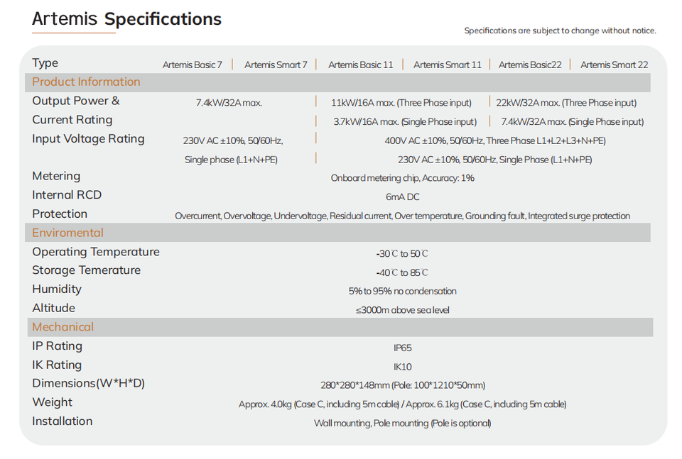 7 กิโลวัตต์ 11 กิโลวัตต์ 22 กิโลวัตต์ 7.6 กิโลวัตต์ 11.5 กิโลวัตต์ 19.2 กิโลวัตต์Output Power