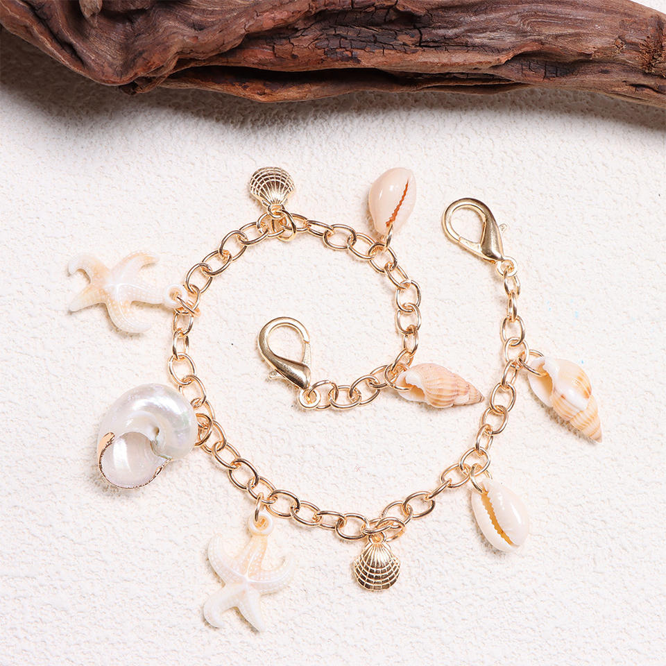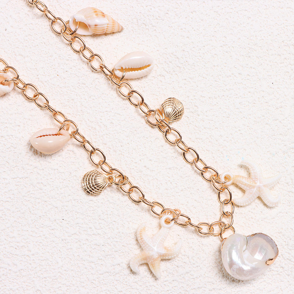 กระเป๋าโซ่รูปปลาดาวและเปลือกหอย ทำจากโลหะผสมสังกะสี ประดับด้วยชาร์มรูปสัตว์ทะเล ของตกแต่งชายหาดสำหรับผู้หญิง สายสะพายประดับเปลือกหอย เครื่องประดับ
