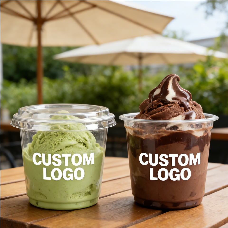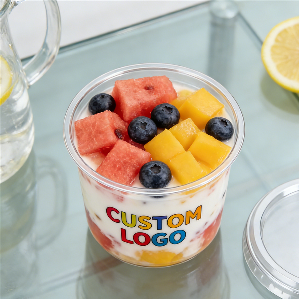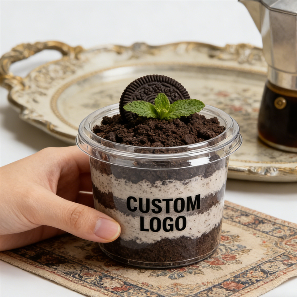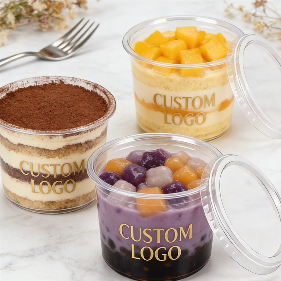 ถ้วยพลาสติก PP แบบผนังเดียว ขนาด 8 ออนซ์ 10 ออนซ์ 22 ออนซ์ 30 ออนซ์ 90 มม. ยี่ห้อ Starlight สำหรับเสิร์ฟขนมหวานมัทฉะ พิมพ์ลายด้วย UV ผลิตจากอันฮุย