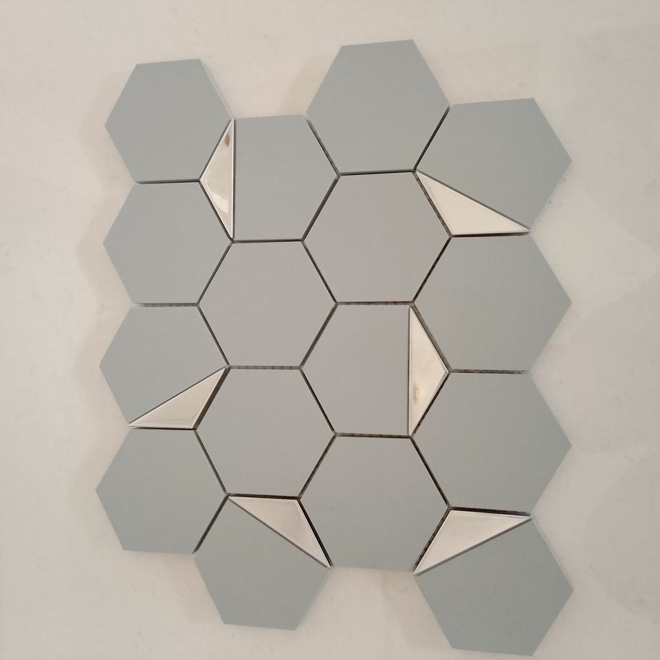 แผ่นกระเบื้องโมเสคเซรามิก PVD ลายหกเหลี่ยม73มม. เคลือบสีเงินสำหรับทางเดินในสวนระเบียงและลาน walls260X300MM