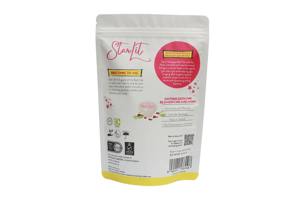 เกลืออาบน้ำหิมาลัยพร้อมกลีบกุหลาบแห้ง500กรัมประสบการณ์ผ่อนคลายและผ่อนคลาย