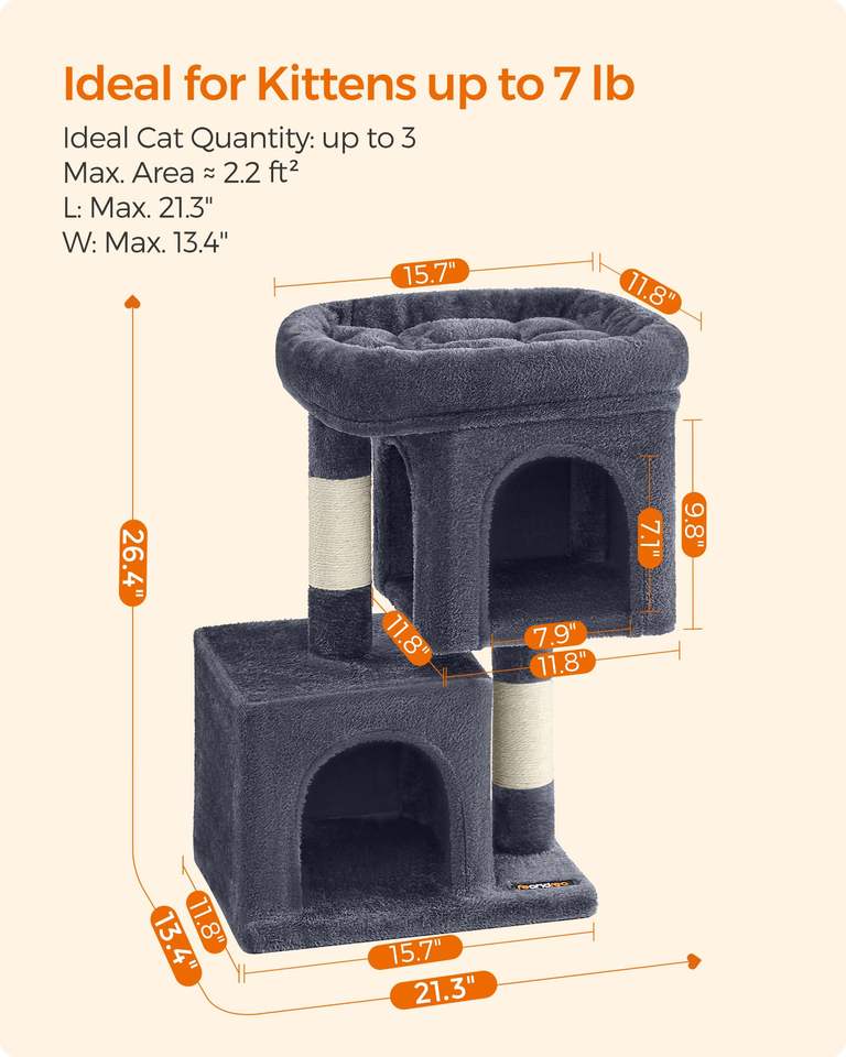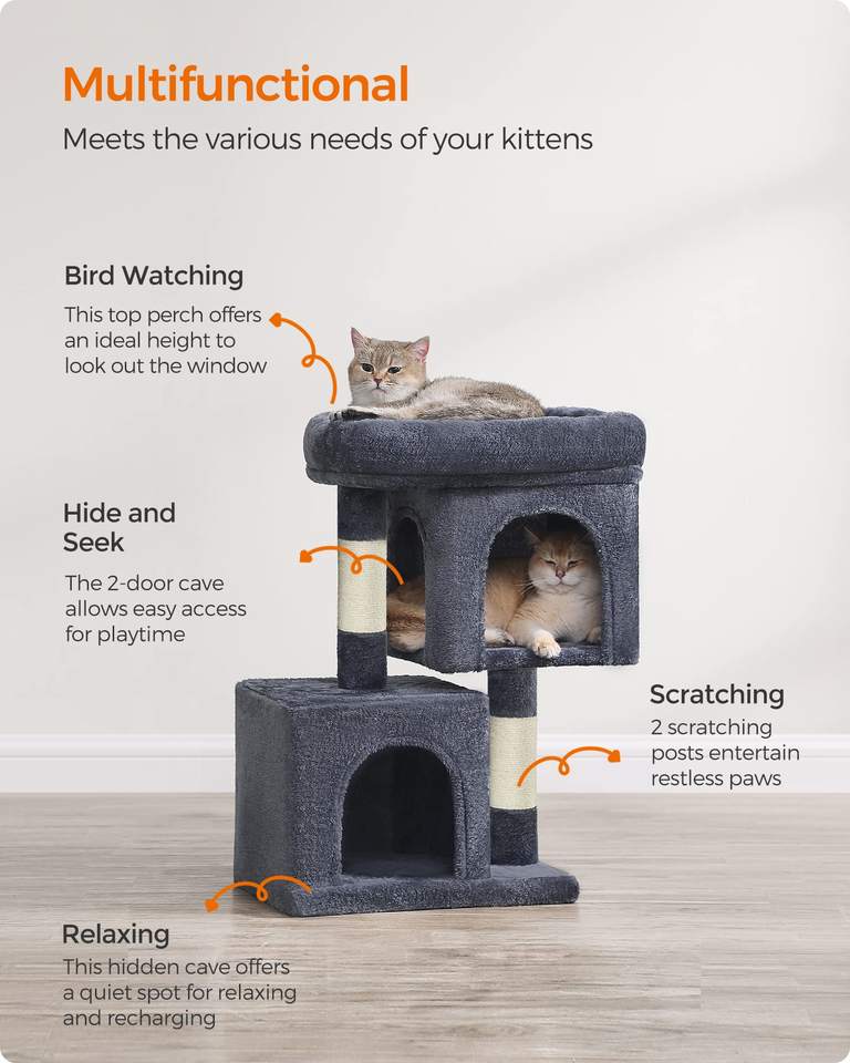 ต้นไม้แมวสตาร์มูน, คอนโดแมวแบบกำมะหยี่สำหรับแมวขนาดใหญ่สูงสุด 16 ปอนด์, เสาข่วนเล็บ, สีเทาเข้ม