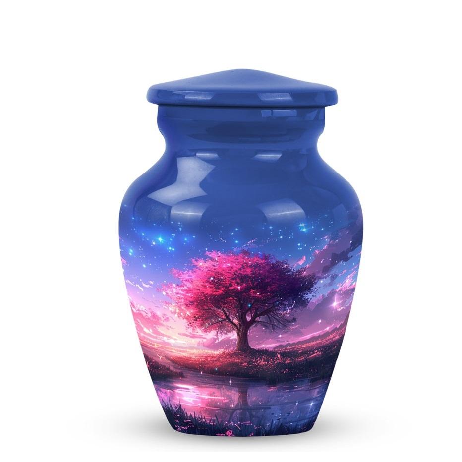 ต้นไม้ดอกคืนที่เต็มไปด้วยดวงดาวโกศสีชมพูสีม่วงอมม่วงสำหรับงานศพโกศตกแต่งทันสมัย