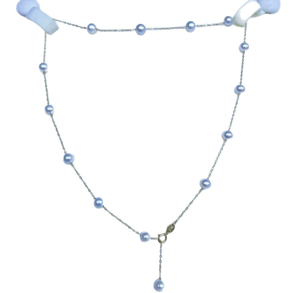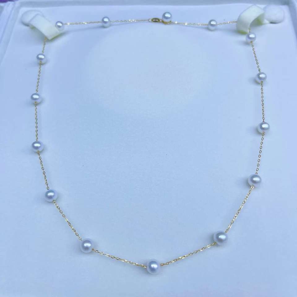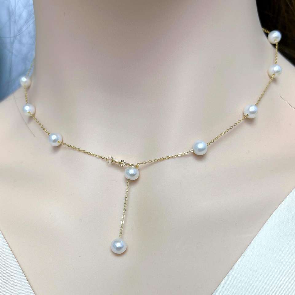 สร้อยคอมุกน้ำจืดทรงกลมขนาด 5-6 มม. รุ่น Starry Sky ดีไซน์เรียบหรู พรีเมียม เงินแท้ S925 ให้แสงสว่างสวยงามไร้ตำหนิ ด้วยความงดงามจากธรรมชาติ