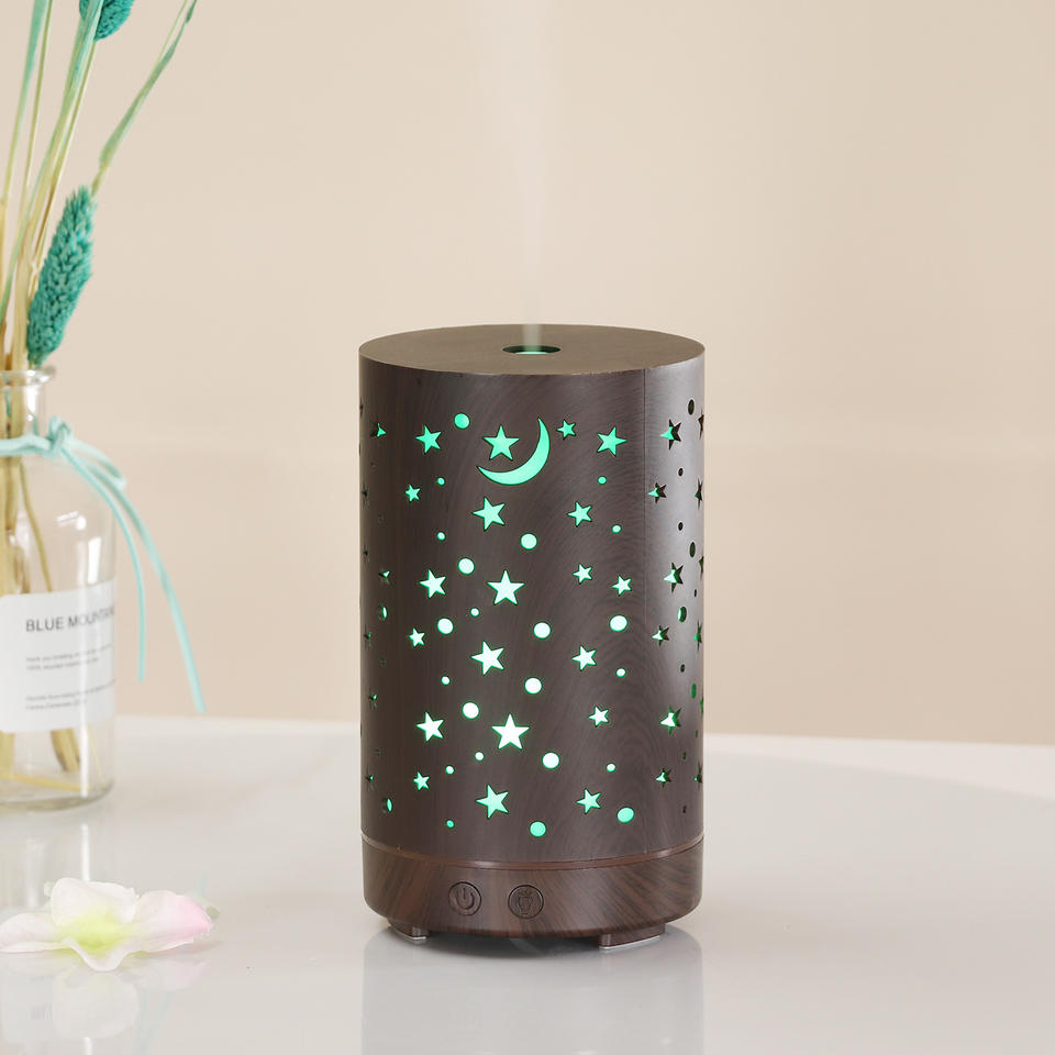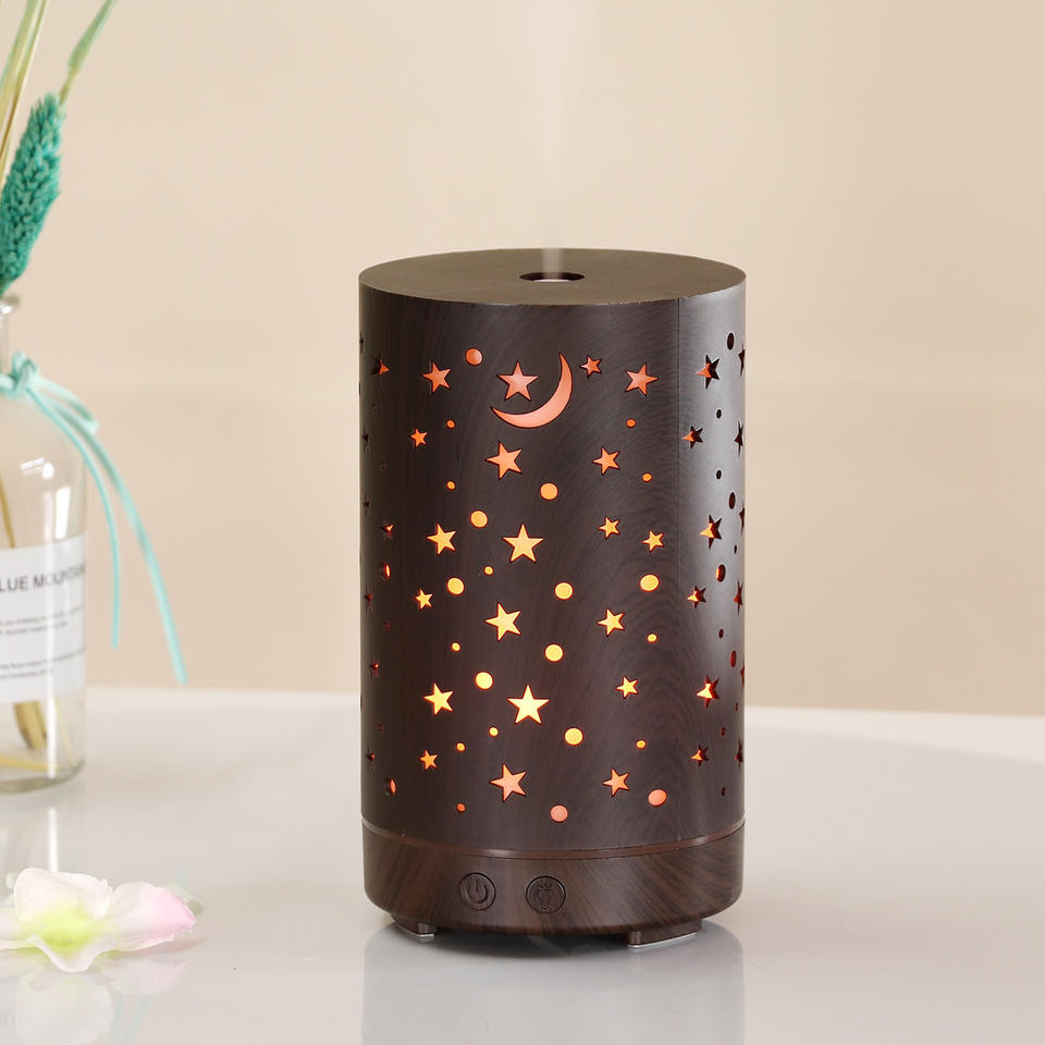 เครื่องกระจายกลิ่นหอม Starry Sky รุ่นมินิ สำหรับตั้งโต๊ะ ลายไม้สีเข้ม ความจุ 0.5 ลิตร ใช้พลังงานจาก USB เหมาะสำหรับใช้ในบ้านและสำนักงาน