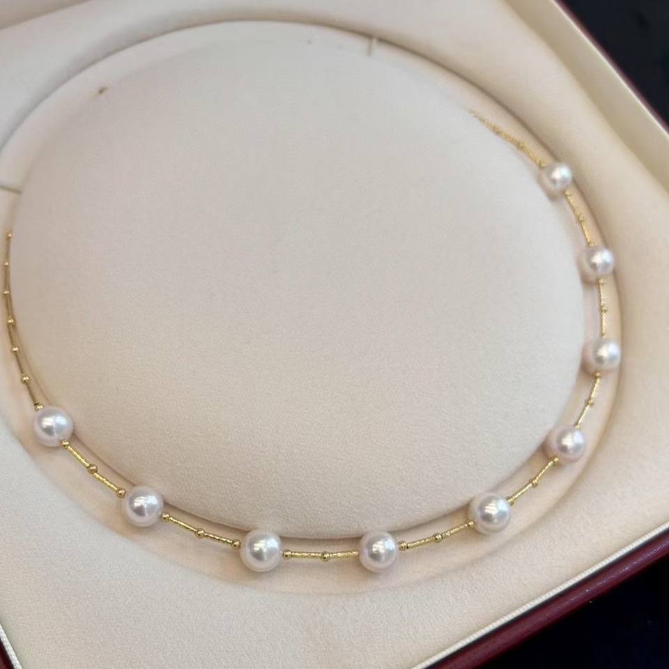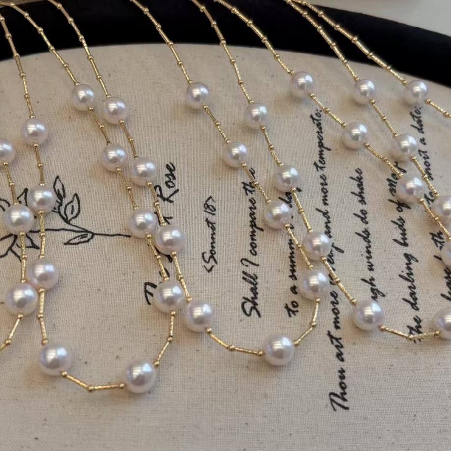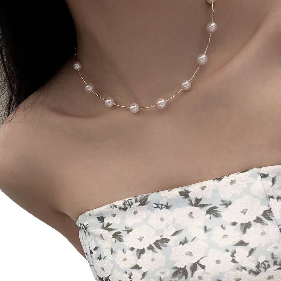Starry Sky Luxury High-End Japanese Korean Fashion 9-10 Pearl Necklace French Bamboo Knot Clavicle Chain Starry Pearl Necklace