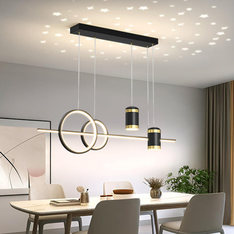 โคมไฟเพดานรูปดาว LED แบบยาวสำหรับห้องรับประทานอาหาร พร้อมระบบควบคุมด้วยเสียง สีดำทอง