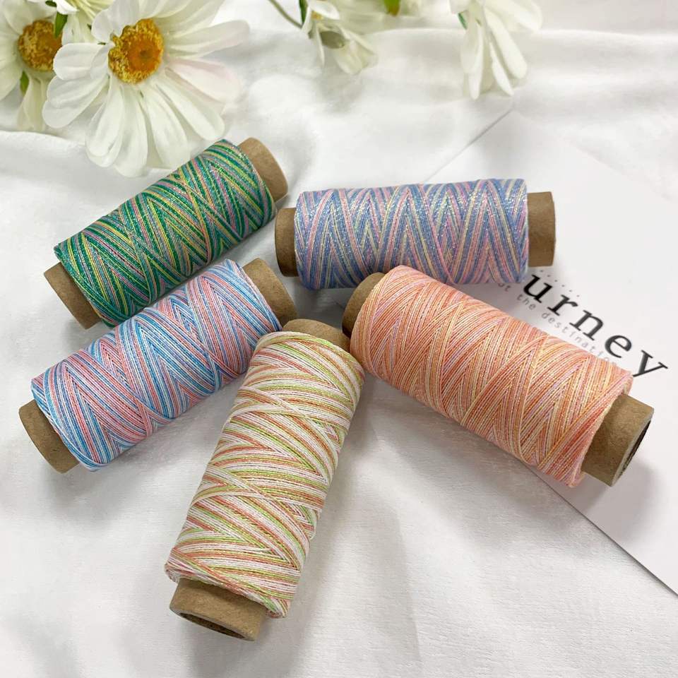 ด้ายแว็กซ์สีฟ้าประกายดาว ด้ายถักแบบม้วนกระดาษ ด้ายแว็กซ์กลมเงา สำหรับงานฝีมือ DIY งานถักมาคราเม่
