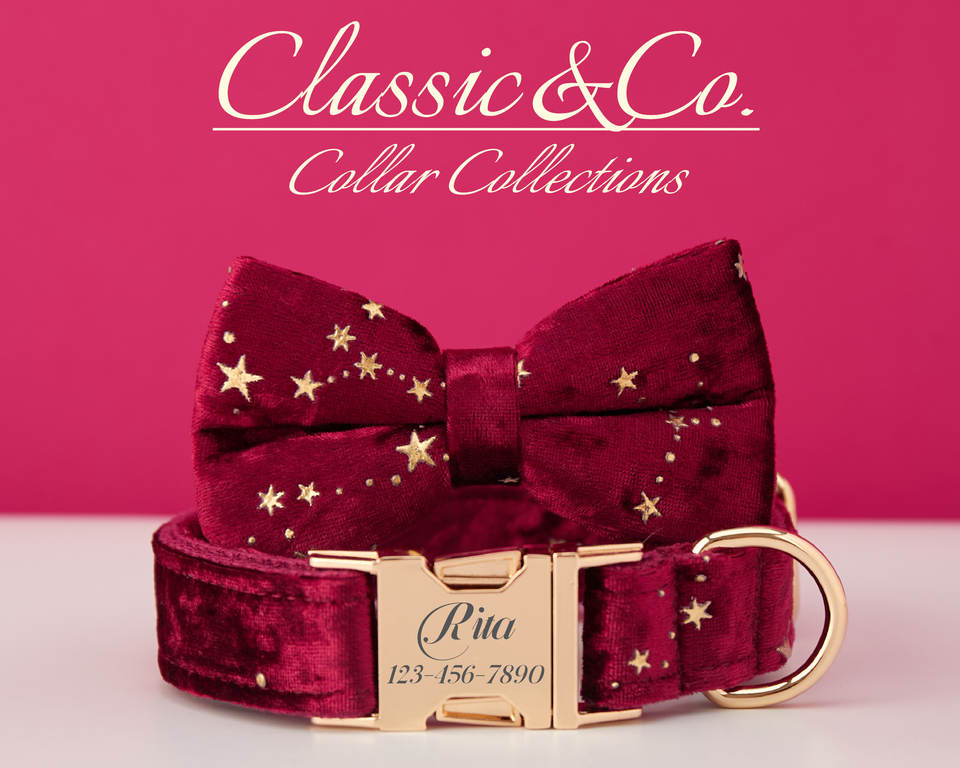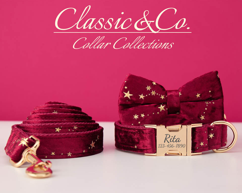 ชุดสายจูงสุนัขผูกโบว์ผูกคอสุนัขส่วนบุคคลลายดาวสลักชื่อสัตว์เลี้ยงหัวเข็มขัดโลหะของขวัญวันเกิดลูกสุนัขจัดส่งฟรี