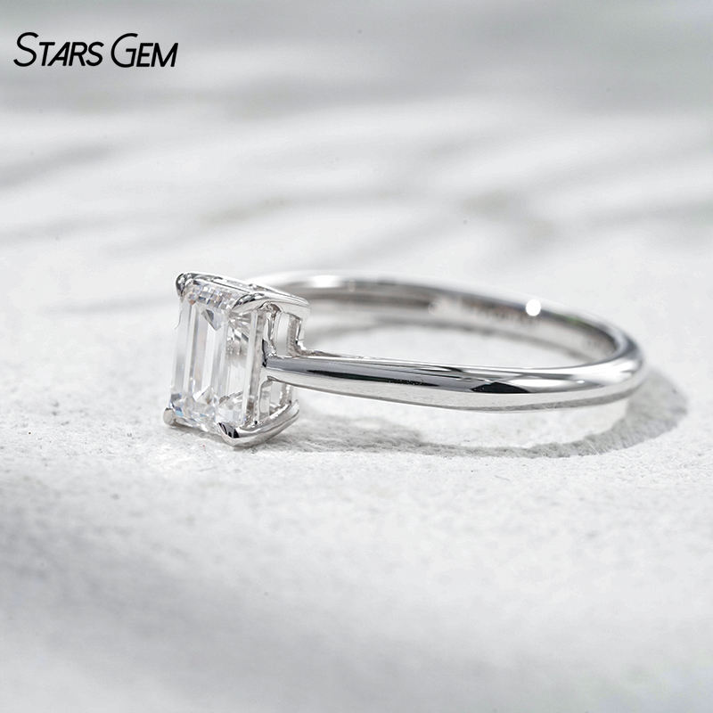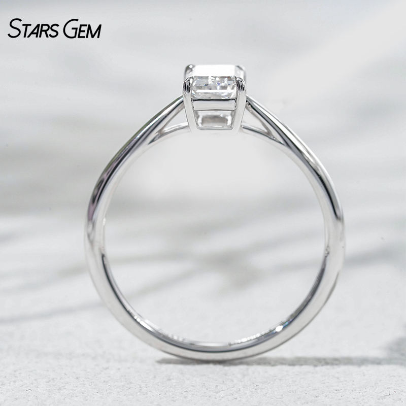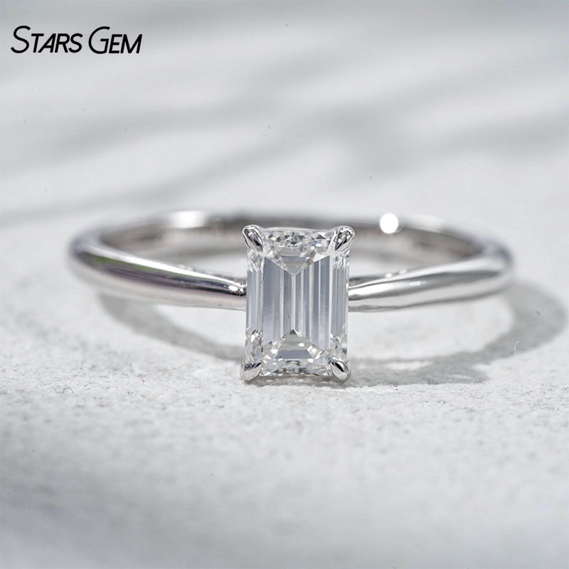แหวนหมั้นเพชรทรงเหลี่ยมมรกต 1.0 กะรัต DEF VS เพชรเลี้ยงในห้องปฏิบัติการ ความบริสุทธิ์ 41.7% ทองคำแท้ 10K ยี่ห้อ StarsGem รุ่นคลาสสิคสำหรับทั้งชายและหญิง ชุบโรเดียม