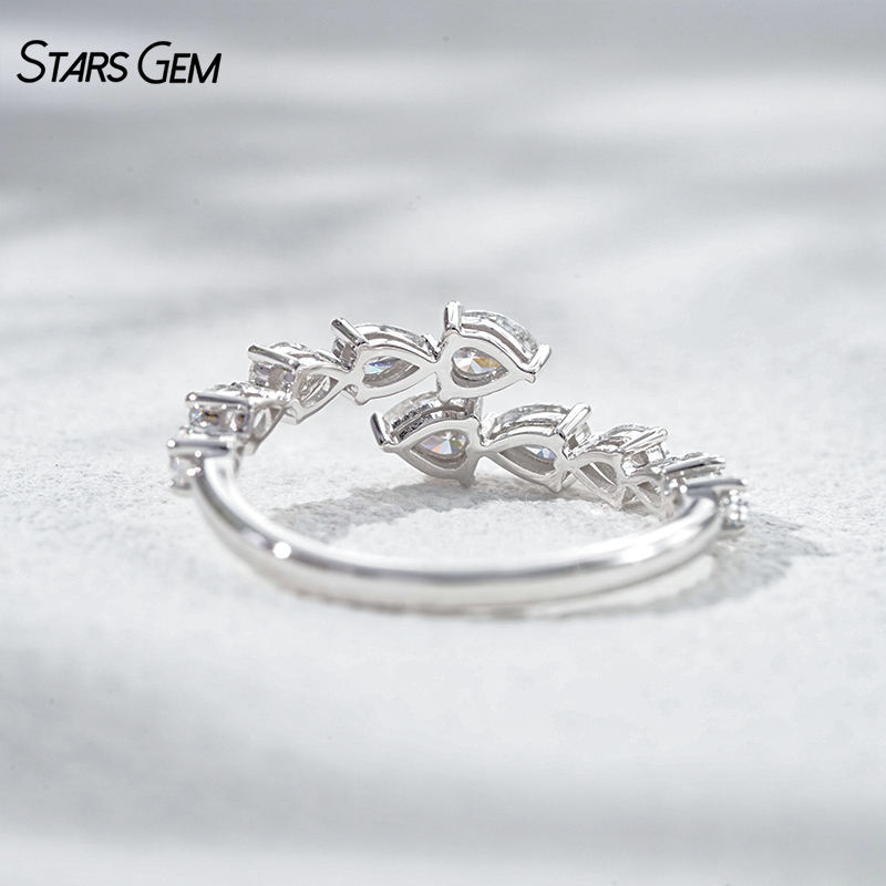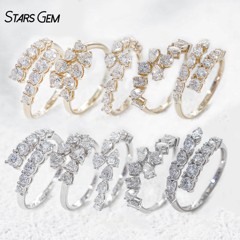 แหวนทองคำแท้ 10K ประดับเพชรแล็บโกรว์ทรงบริลเลียนต์ ดีไซน์เปิดด้านหน้า ชุบโรเดียม รุ่นคลาสสิก เหมาะสำหรับวันครบรอบแต่งงาน จาก StarsGem