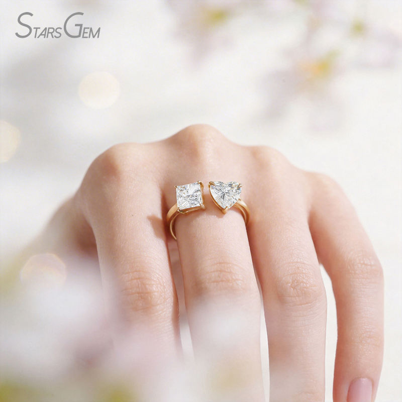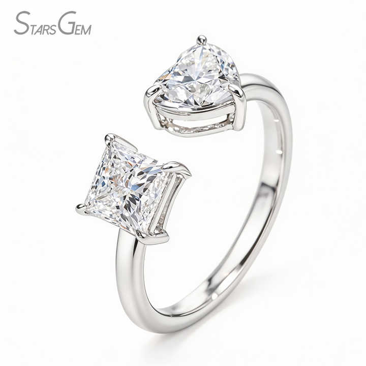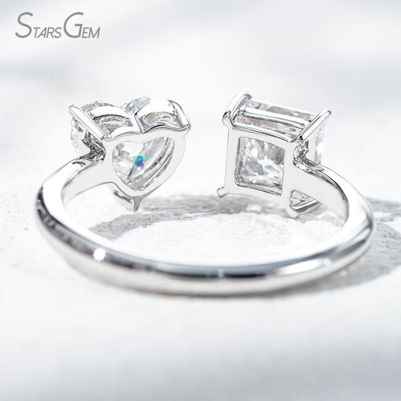 แหวนทองคำแท้ 10K ชุบโรเดียม StarsGem ประดับเพชรแล็บโกรว์ทรงหัวใจ น้ำหนัก 2.0 กะรัต สี E ปรับขนาดได้ สำหรับทั้งชายและหญิง ดีไซน์ทันสมัย