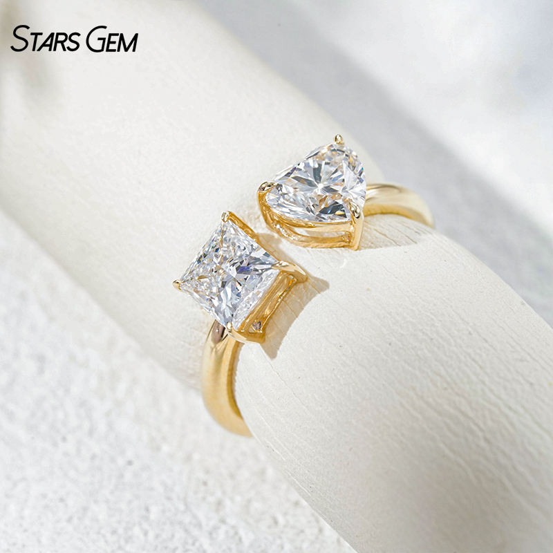แหวนทองคำแท้ 10K ชุบโรเดียม StarsGem ประดับเพชร IGI 2.0 กะรัต สี E เพชรเพาะเลี้ยงทรงหัวใจ ดีไซน์ Toi Et Moi แบบเปิดปรับขนาดได้