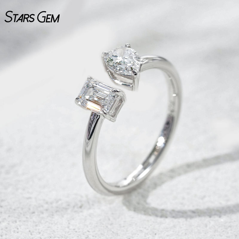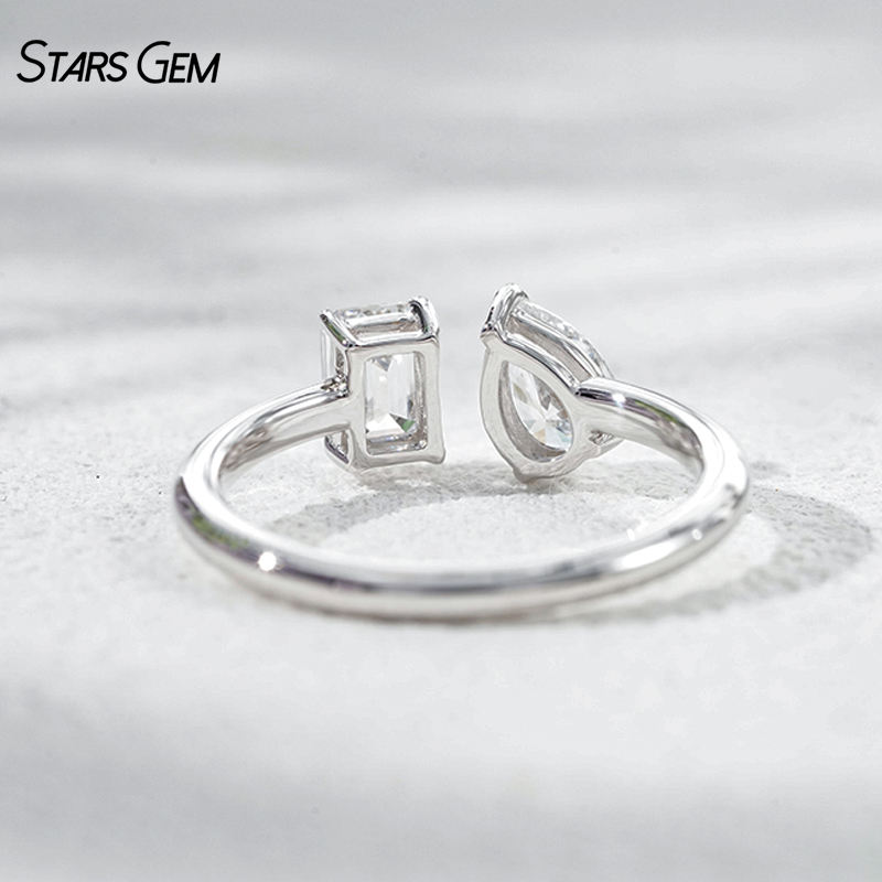 แหวนหมั้นปรับขนาดได้ StarsGem ทองคำแท้ 10K ชุบโรเดียม ประดับเพชรแล็บโกรว์ 1.0 กะรัต รูปทรงหยดน้ำสีเขียวมรกต E VS