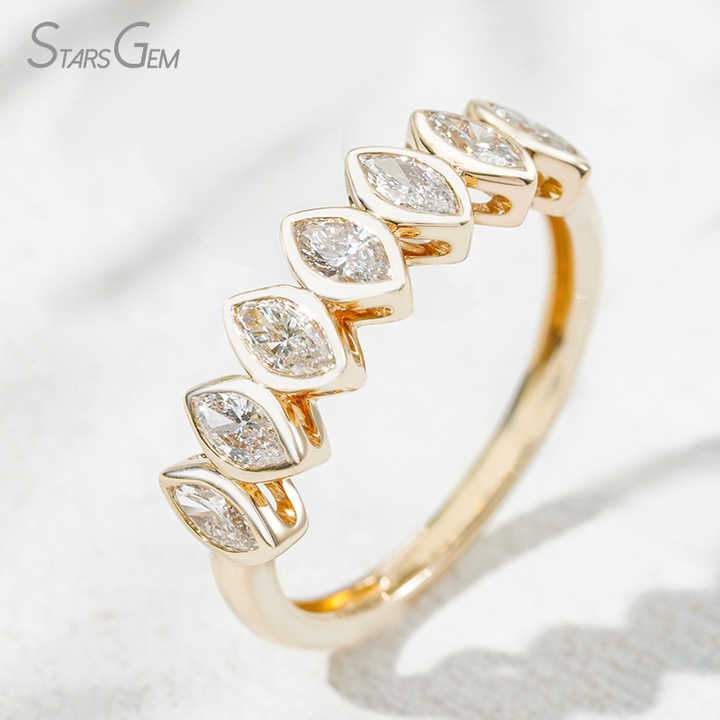 แหวนแต่งงานแบบ Eternity ประดับเพชรทรง Marquise น้ำหนัก 0.7 กะรัต DEF VS เพชรเลี้ยงในห้องปฏิบัติการ 7 เม็ด ตัวเรือนทองคำแท้ 14K จาก StarsGem พร้อมขอบแบบ Bezel Setting