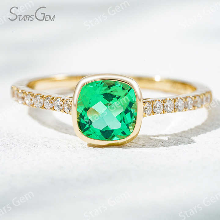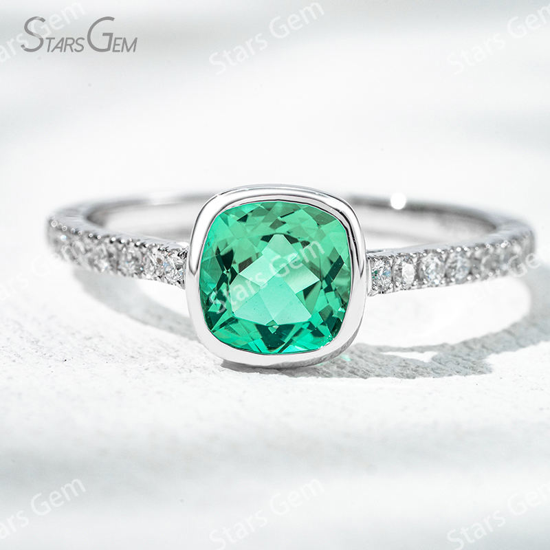 แหวนหมั้นเพชรพลอยสังเคราะห์ทรงคุชชั่น 6 มม. น้ำหนัก 0.9 กะรัต รุ่น StarsGem Classic ประดับทอง 18K สำหรับงานแต่งงานและวันครบรอบ