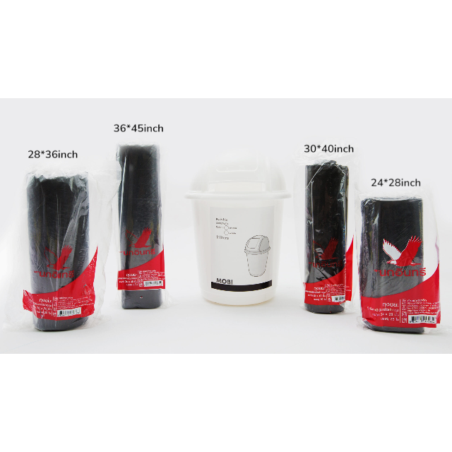 Material:Starseal HDPE Black Garbage bag on roll with PP string