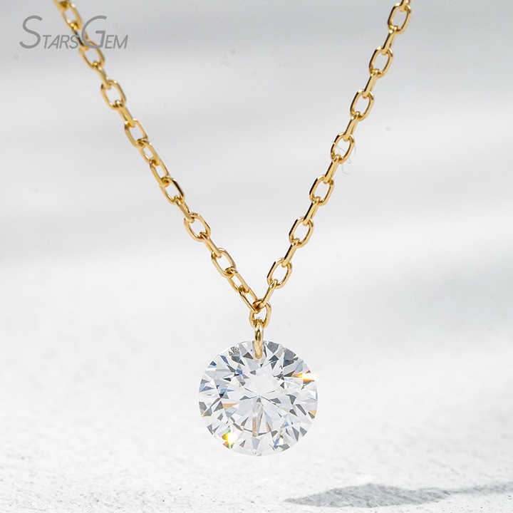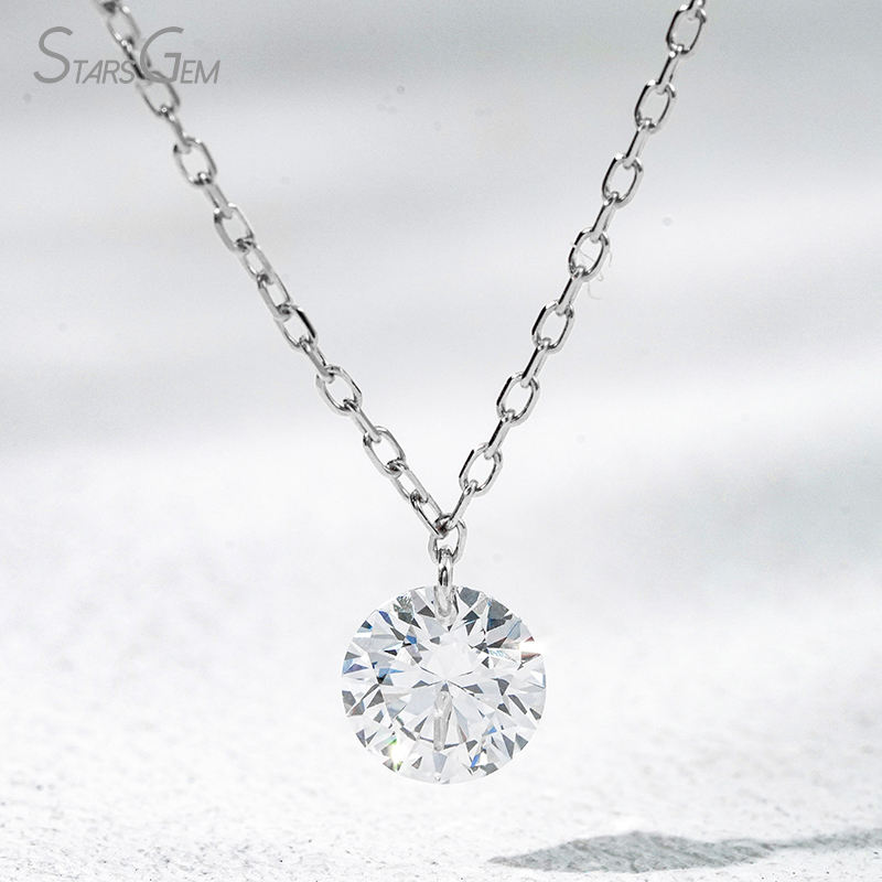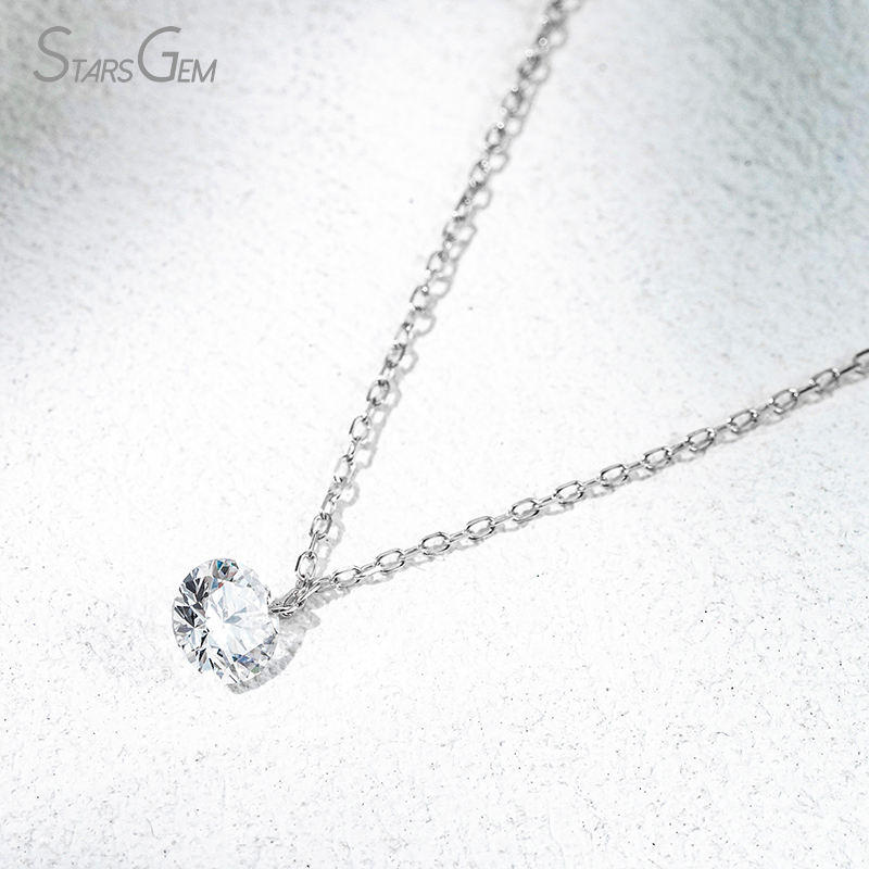 Starsgem 1.0CT 0.5ct กลมตัดสดใสปลูกเพชรเลเซอร์เจาะ10K/18K ทองหรูหราสร้อยคอจี้ unisex