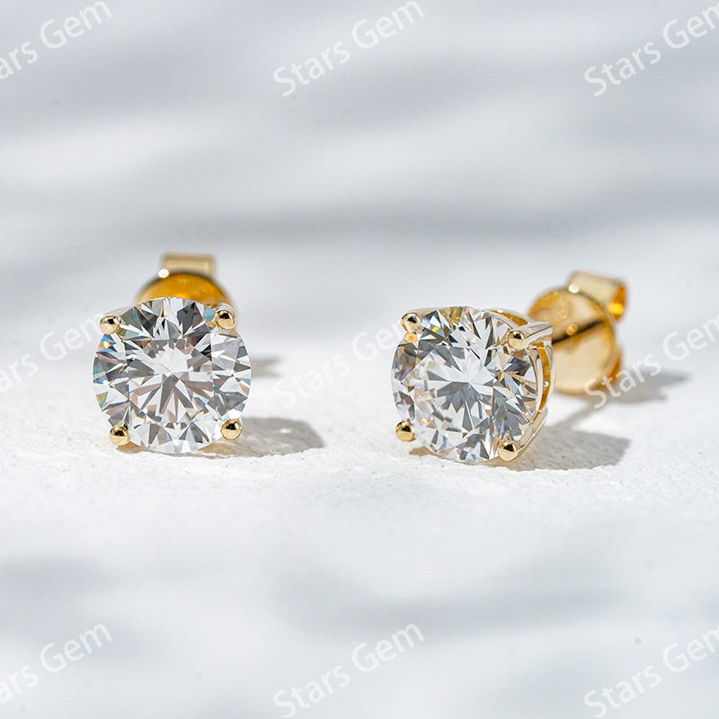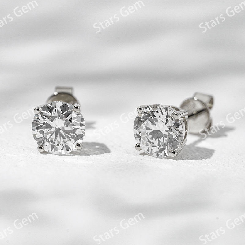 ต่างหูเพชรทรงกลมเจียระไนแบบบริลเลียนท์ 0.5 กะรัต 4.2 มม. สี D เพชรเลี้ยงในห้องปฏิบัติการ ตัวเรือนทอง 14K สำหรับทุกเพศ สไตล์หรูหรา