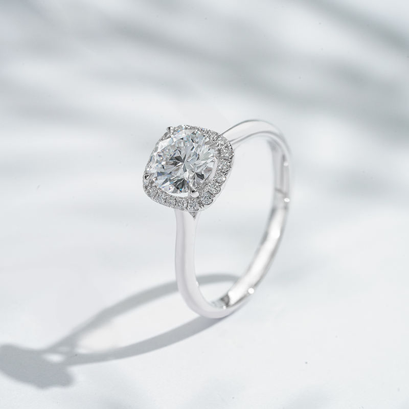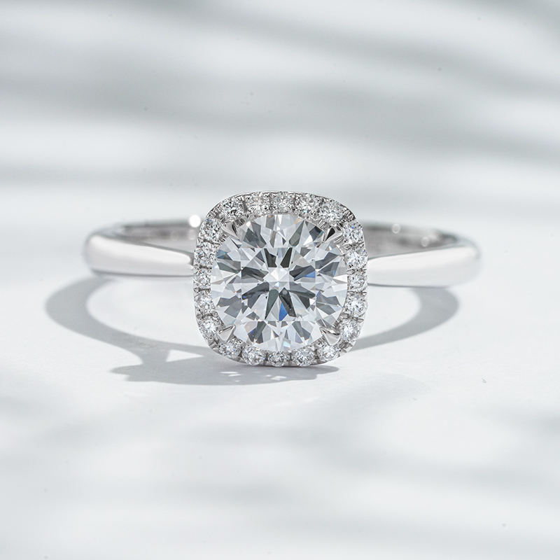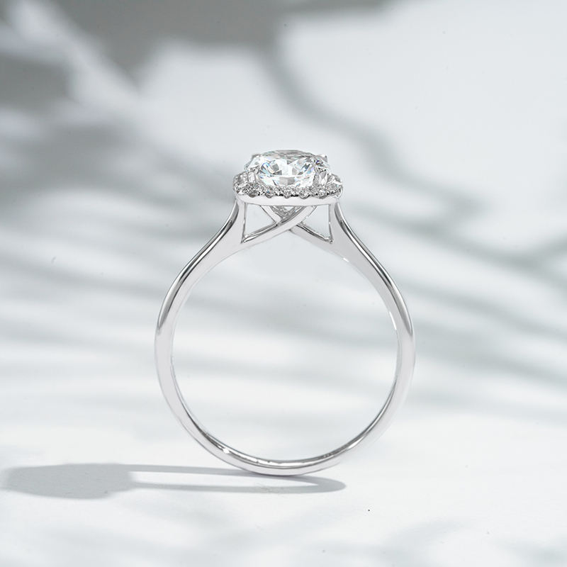 แหวนหมั้นเพชรที่เจิดจ้าทรงกลมขนาด6.6มม. แหวนหมั้นเพชรสีทองขาว18K รัศมีคลาสสิก